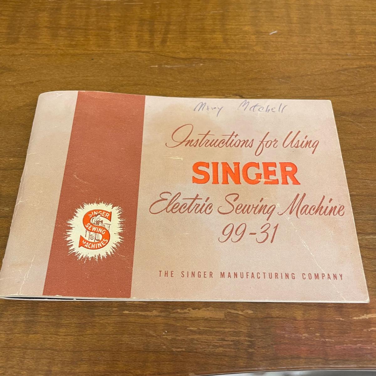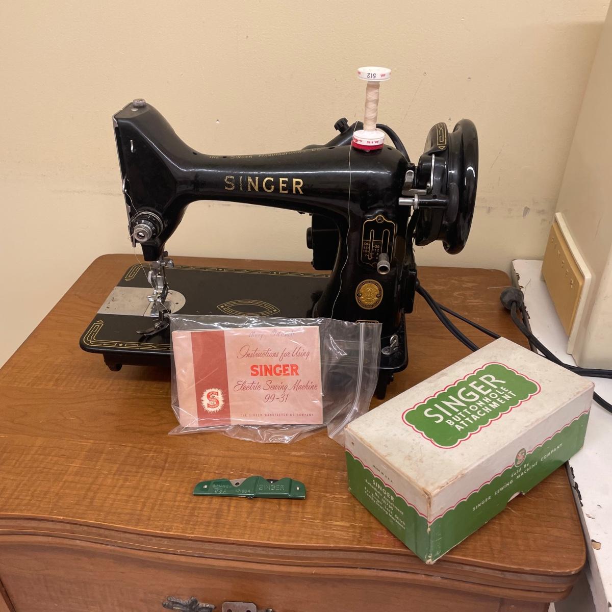 Vintage Singer 99K Sewing Machine w/ Buttonhole Attachment & Manual (SR-RG)