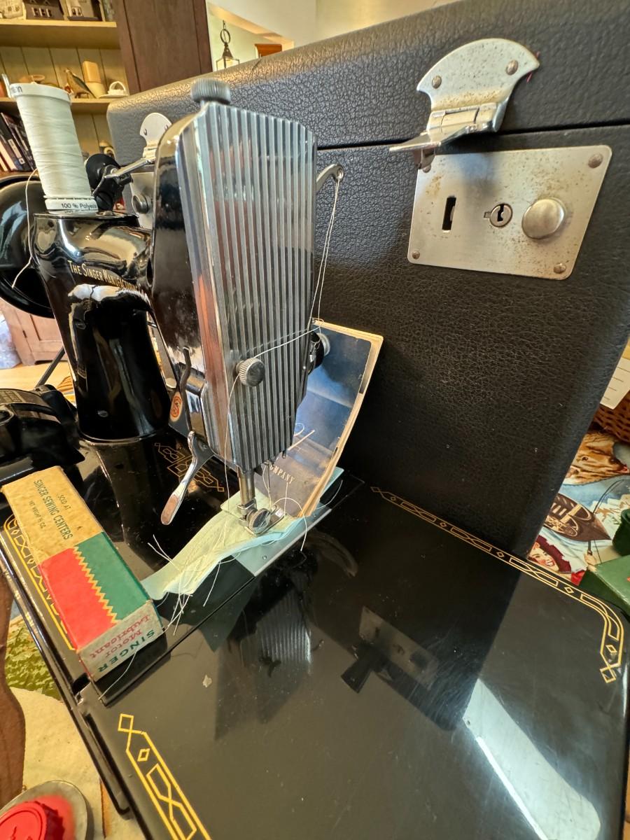 Beautiful Singer Featherweight 221 with case and attachments. Plug in and sew condition