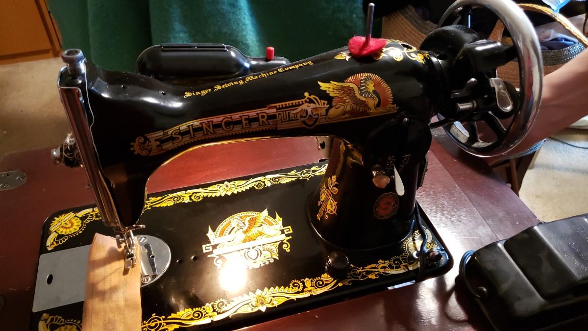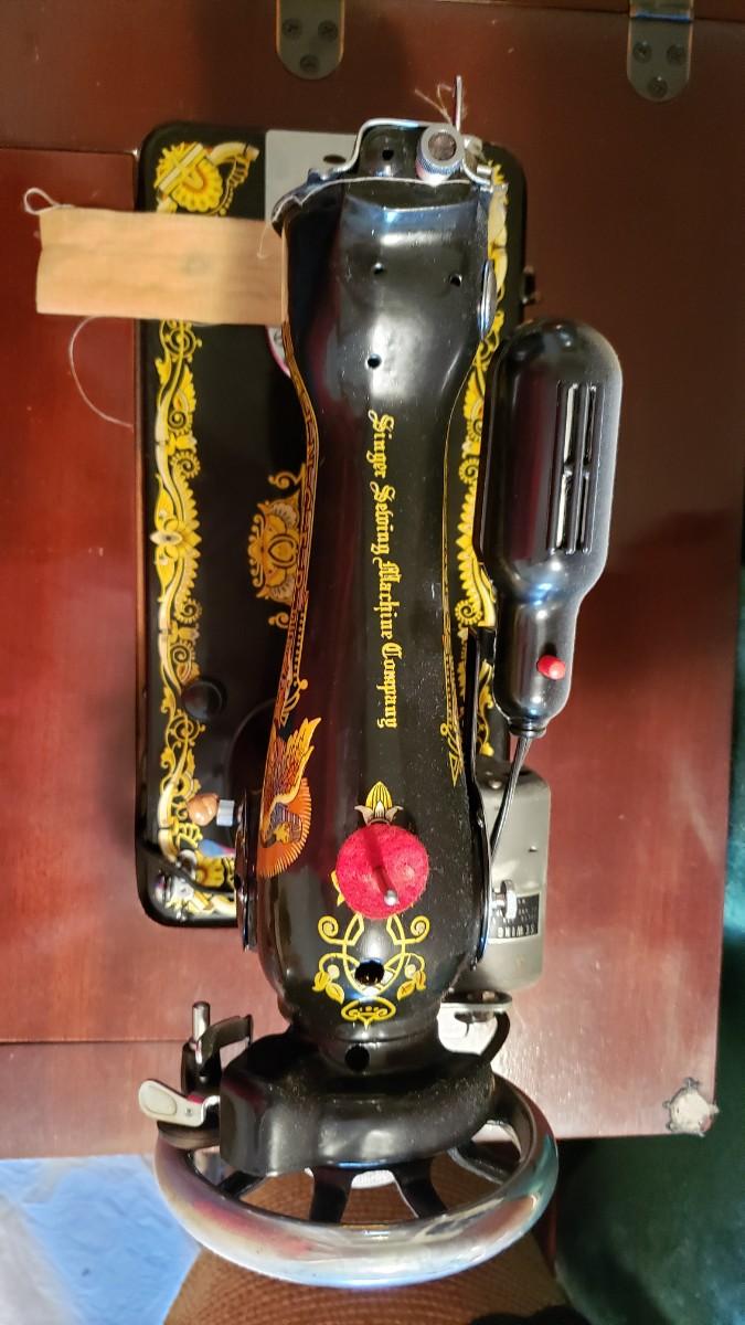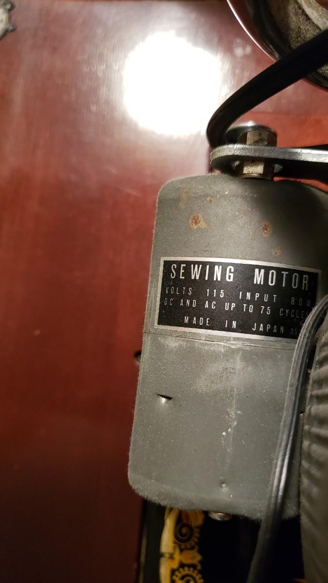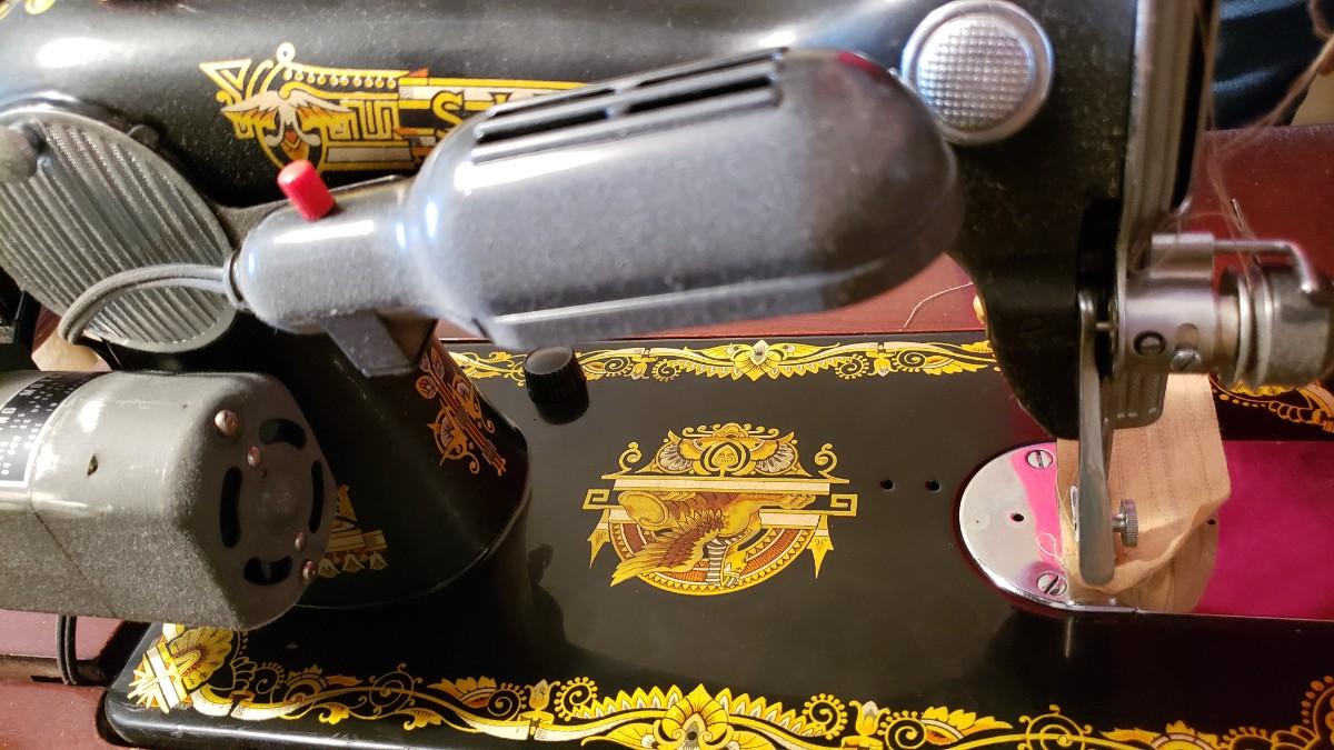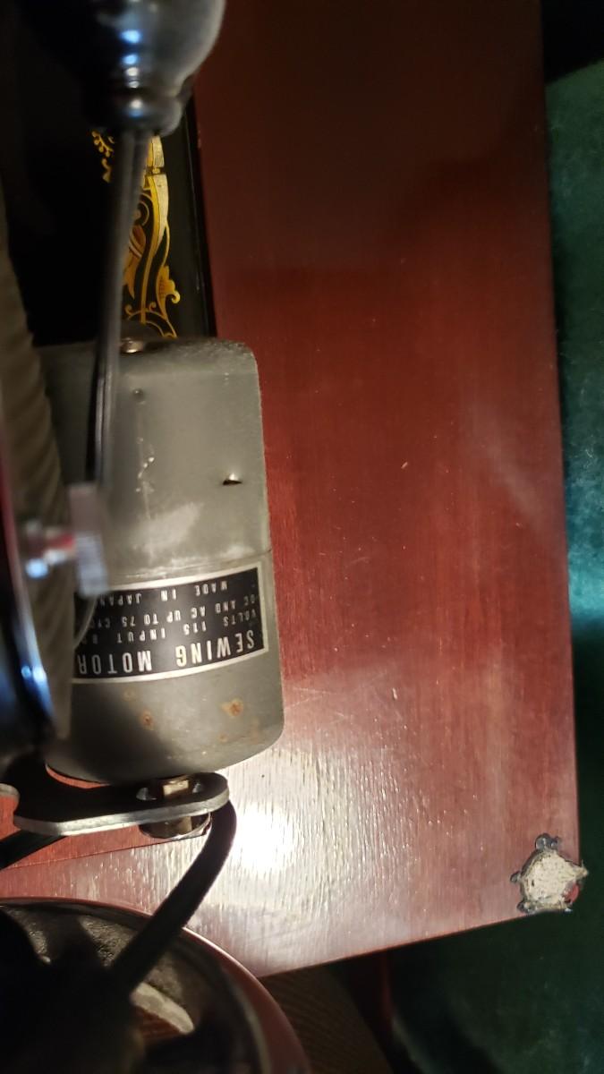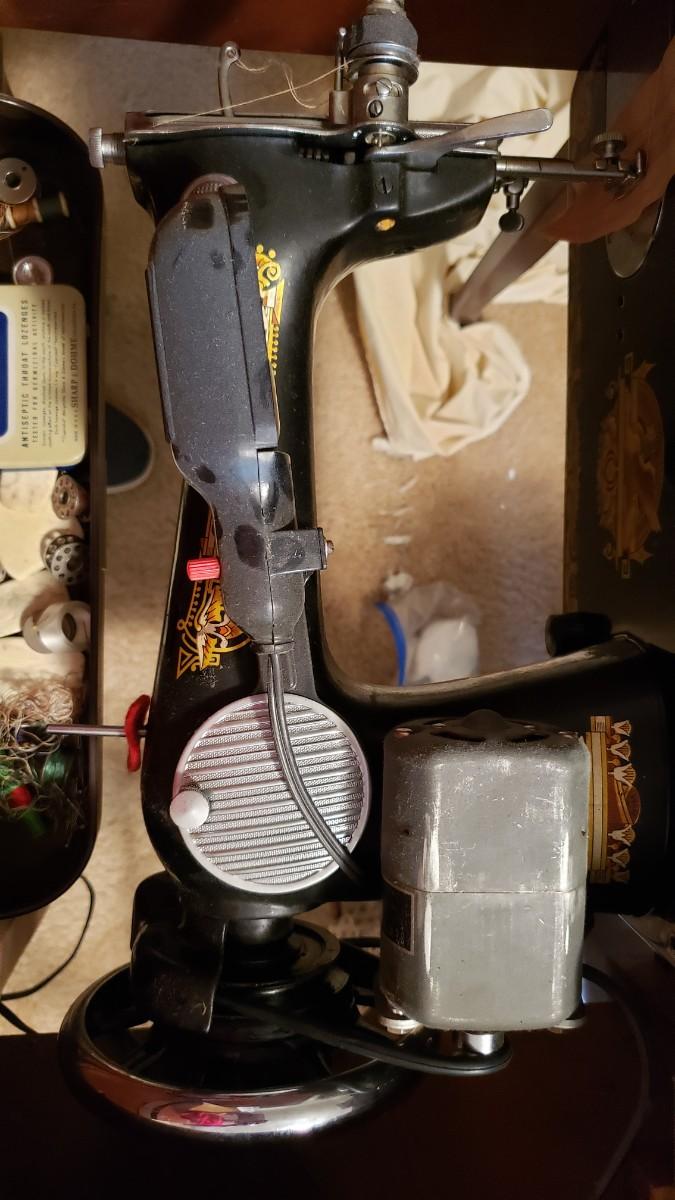 Antique singer sewing machine electrified with foot pedal.