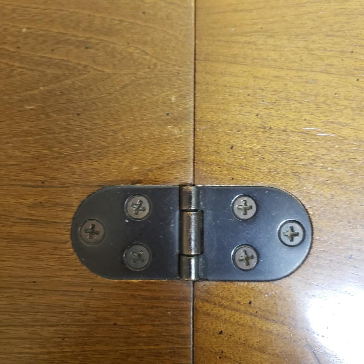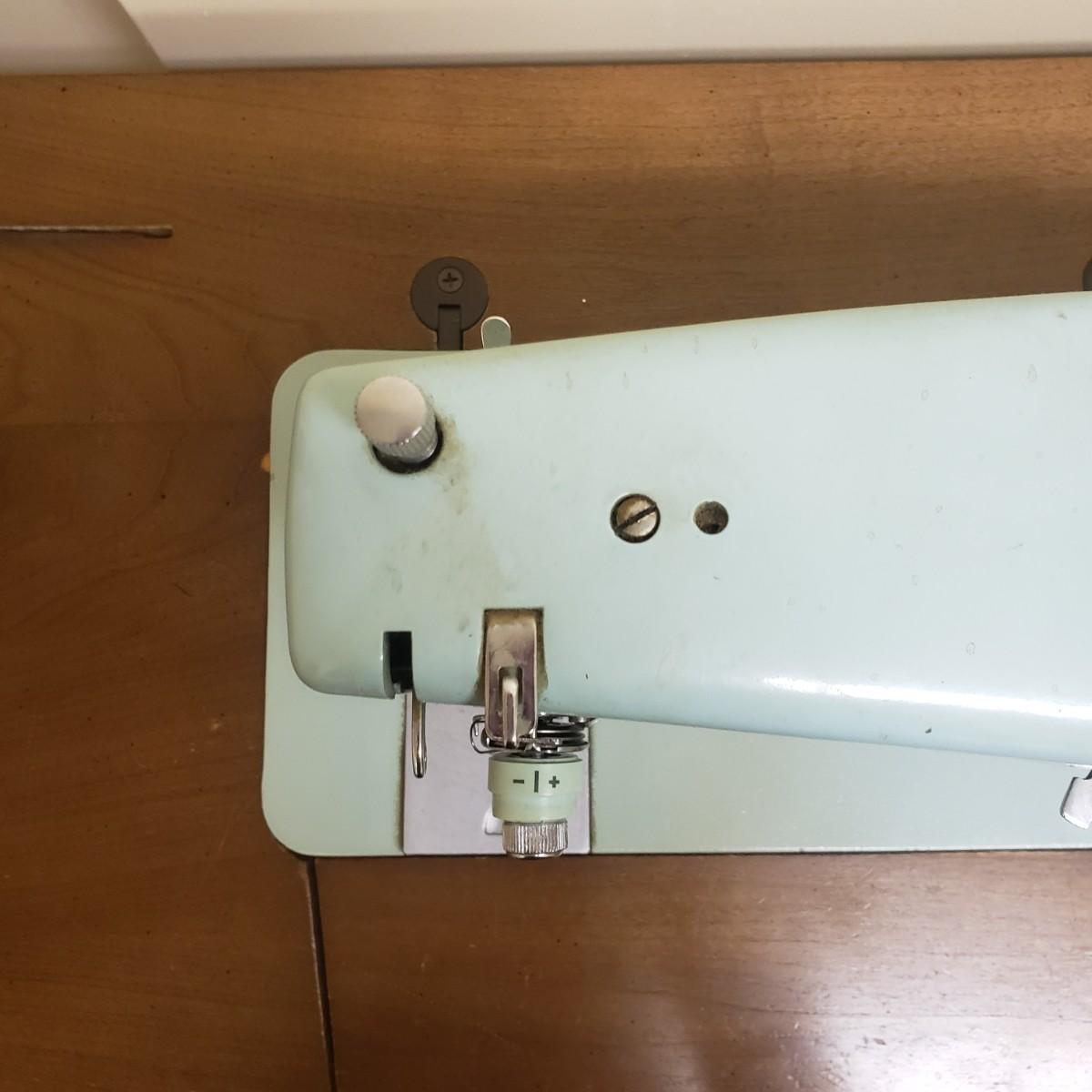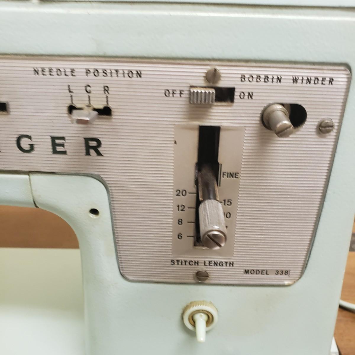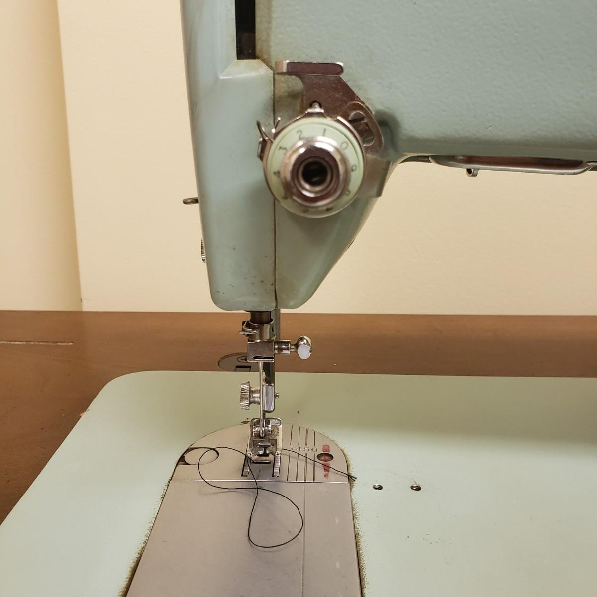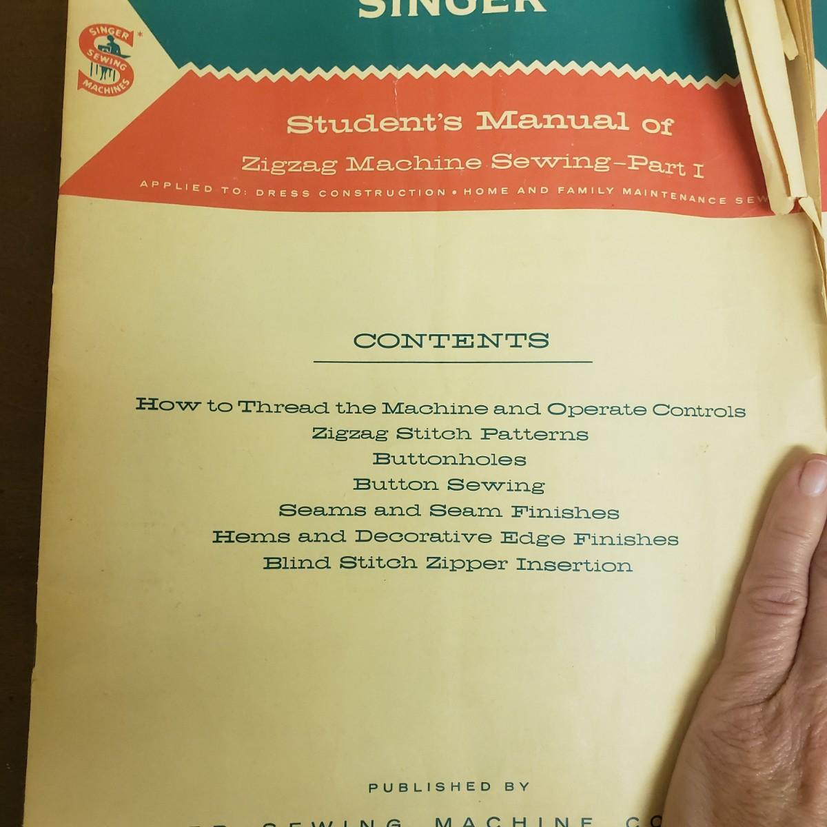 This vintage Singer Sewing machine cabinet measures 26" x 19" x 30"H fold up. The cabinet is made of wood and the front section with one drawer and one faux drawer is a plastic front. The machine fit in table for easy storage. When unfolded, the table measures 51" x 19" x 30"H. The sewing machine powers on when plugged in. The foot press will turn the spindle for a little bit, then stop, so it will need some maintenance to functional a sewing machine. The table itself would make a great side table! The box of feet and instruction manuals are included. The back bottom is hanging, but appears to be fixable.