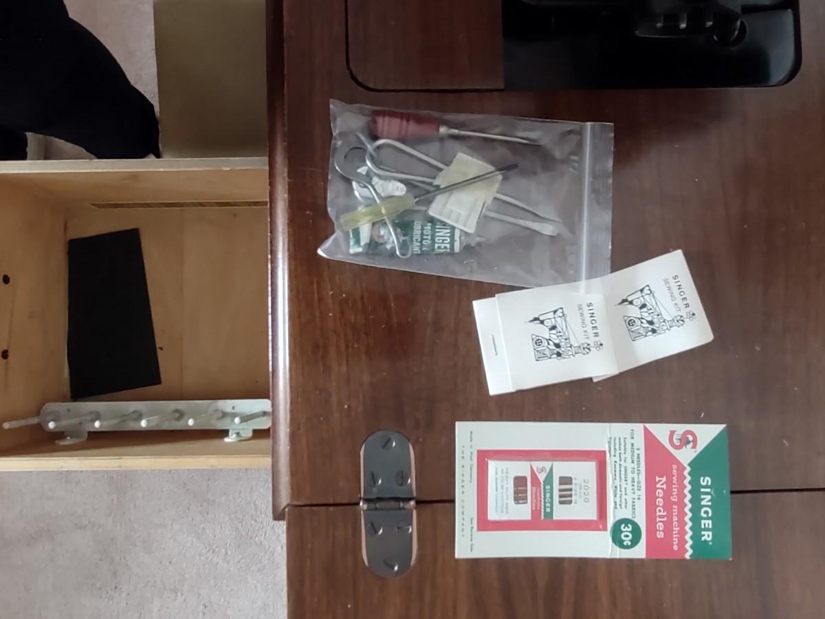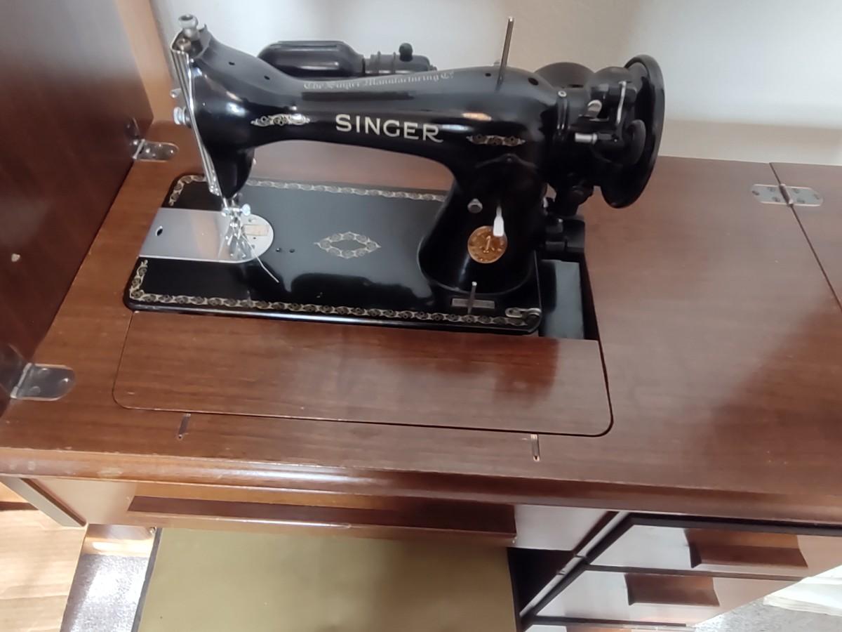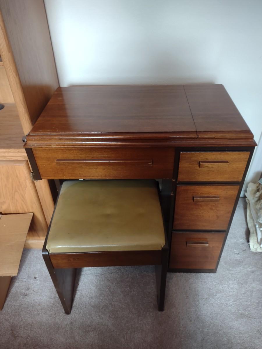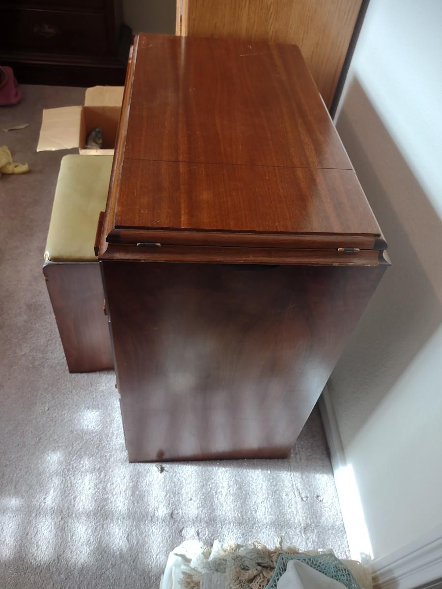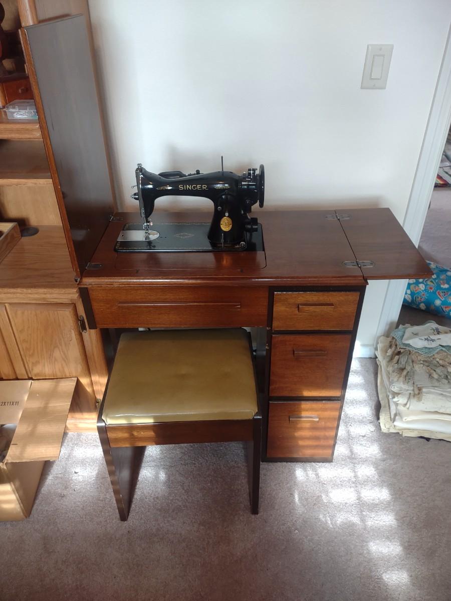 SINGER SEWING MACHINE IN CABINET WITH STOOL