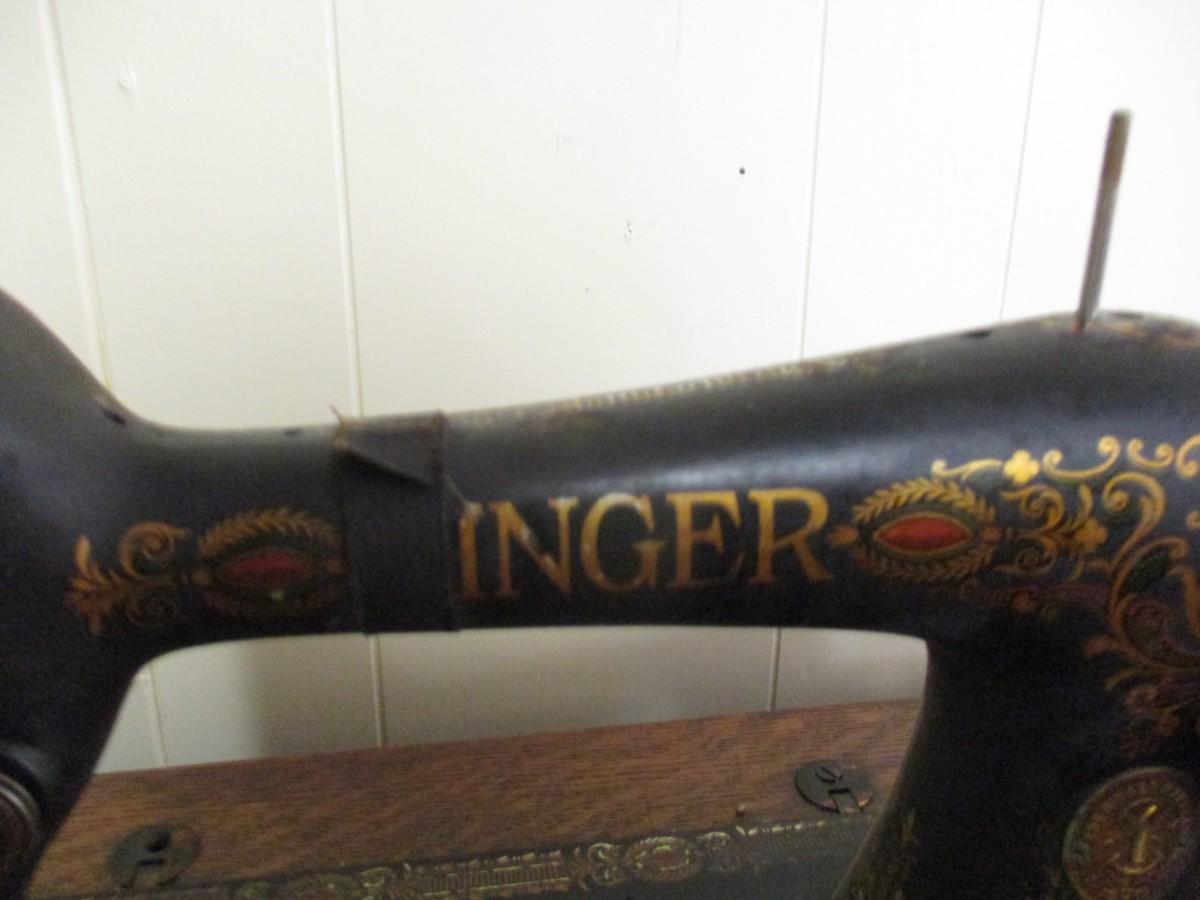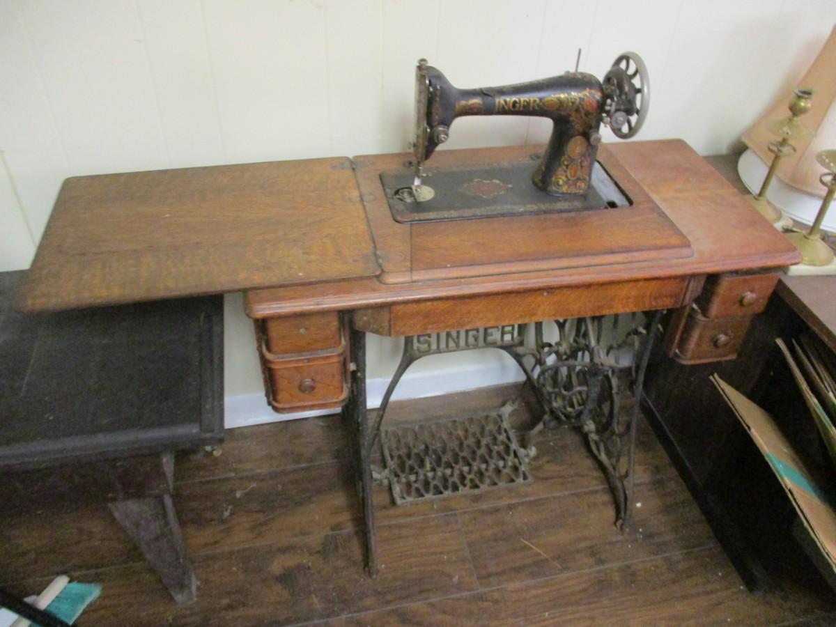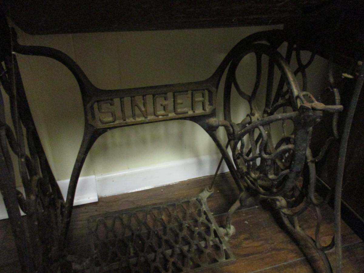 Antique Cast Body Treadle Singer Sewing Machine with Cabinet