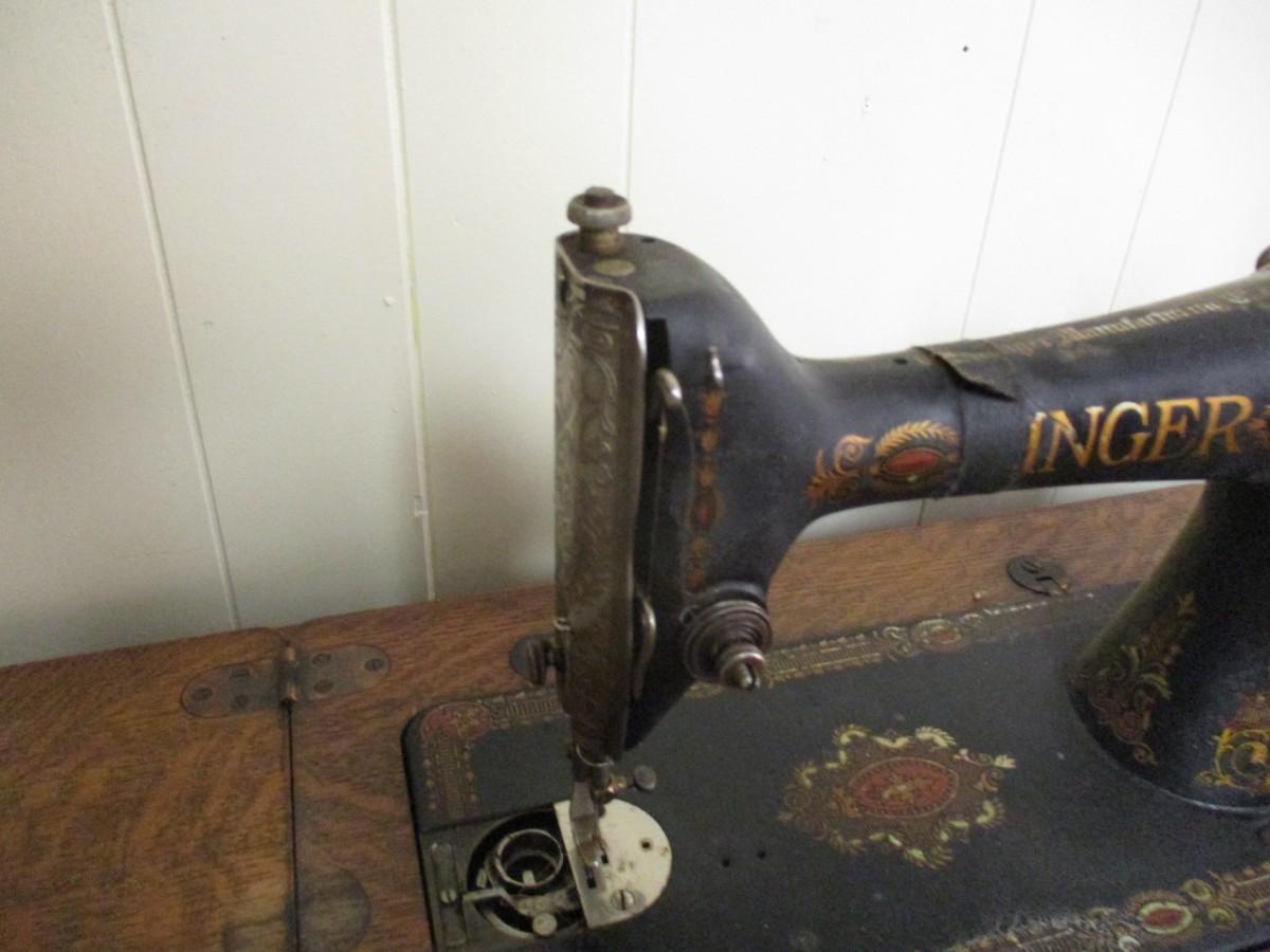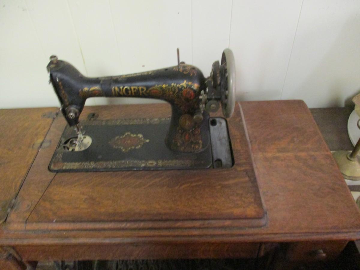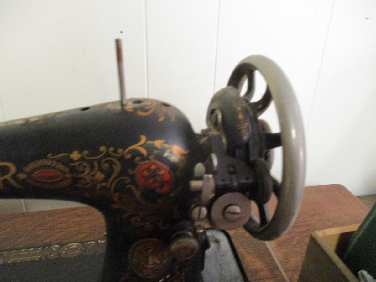 Antique Cast Body Treadle Singer Sewing Machine with Cabinet
