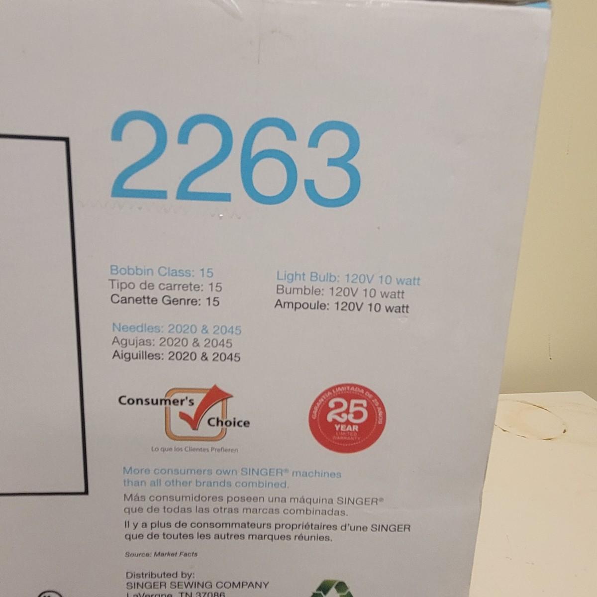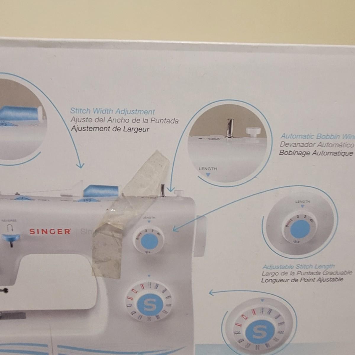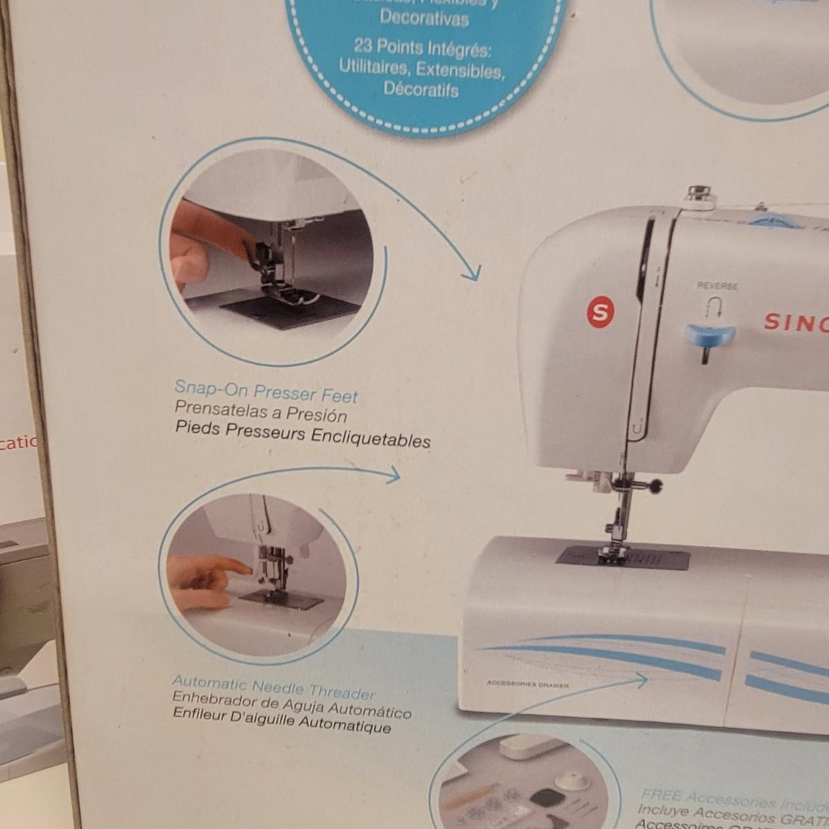 Singer Simple sewing machine 2263, new in box. Has heavy duty metal frame, automatic needle threader and easy stitch selection. Also included is a Simplicity sewing machine 2x magnifier, new in original box. Local pickup only