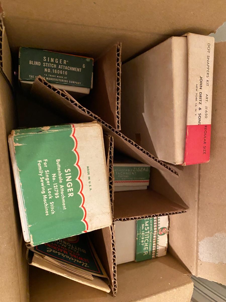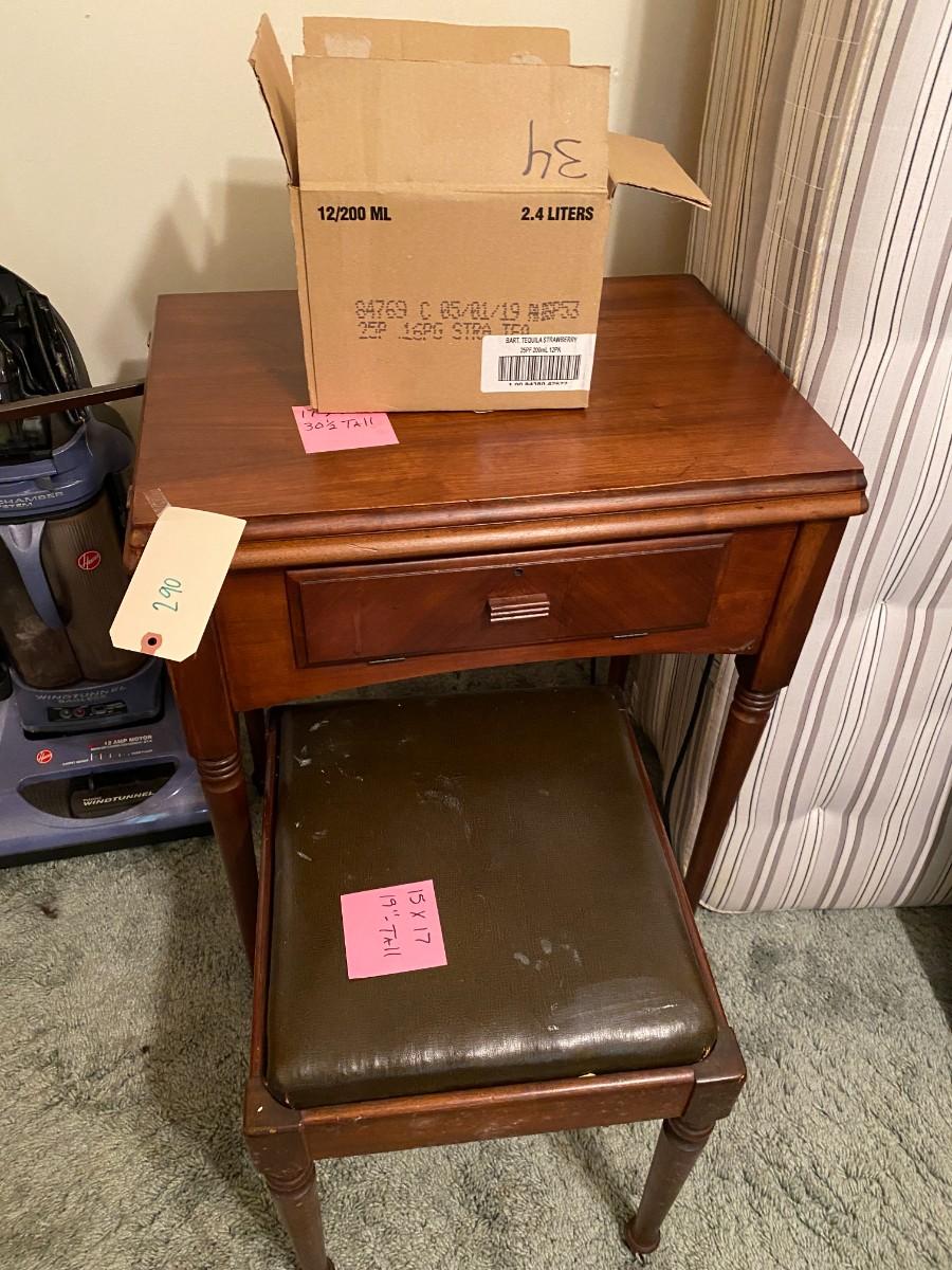 LOT 290 Singer Sewing Machine in Cabinet w/ Stool and Accessories