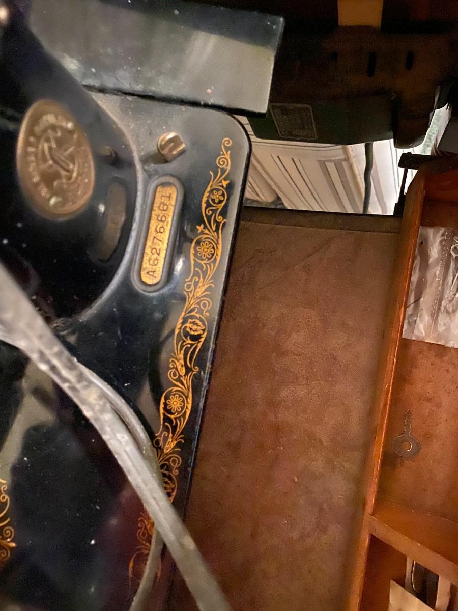 Singer Sewing Machine in Cabinet w/ Stool and Accessories