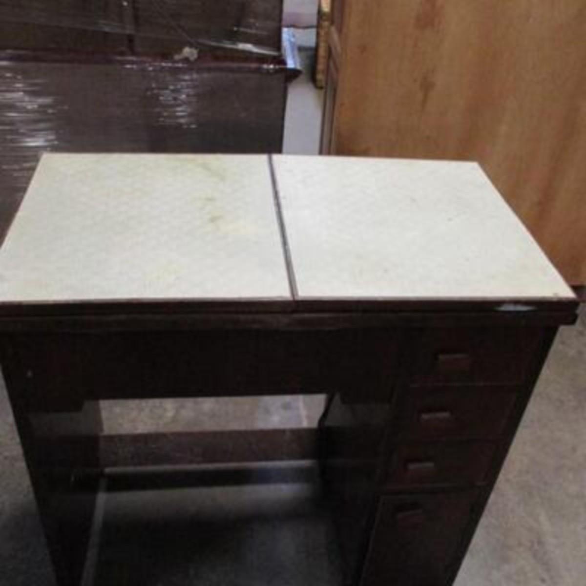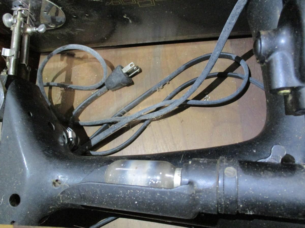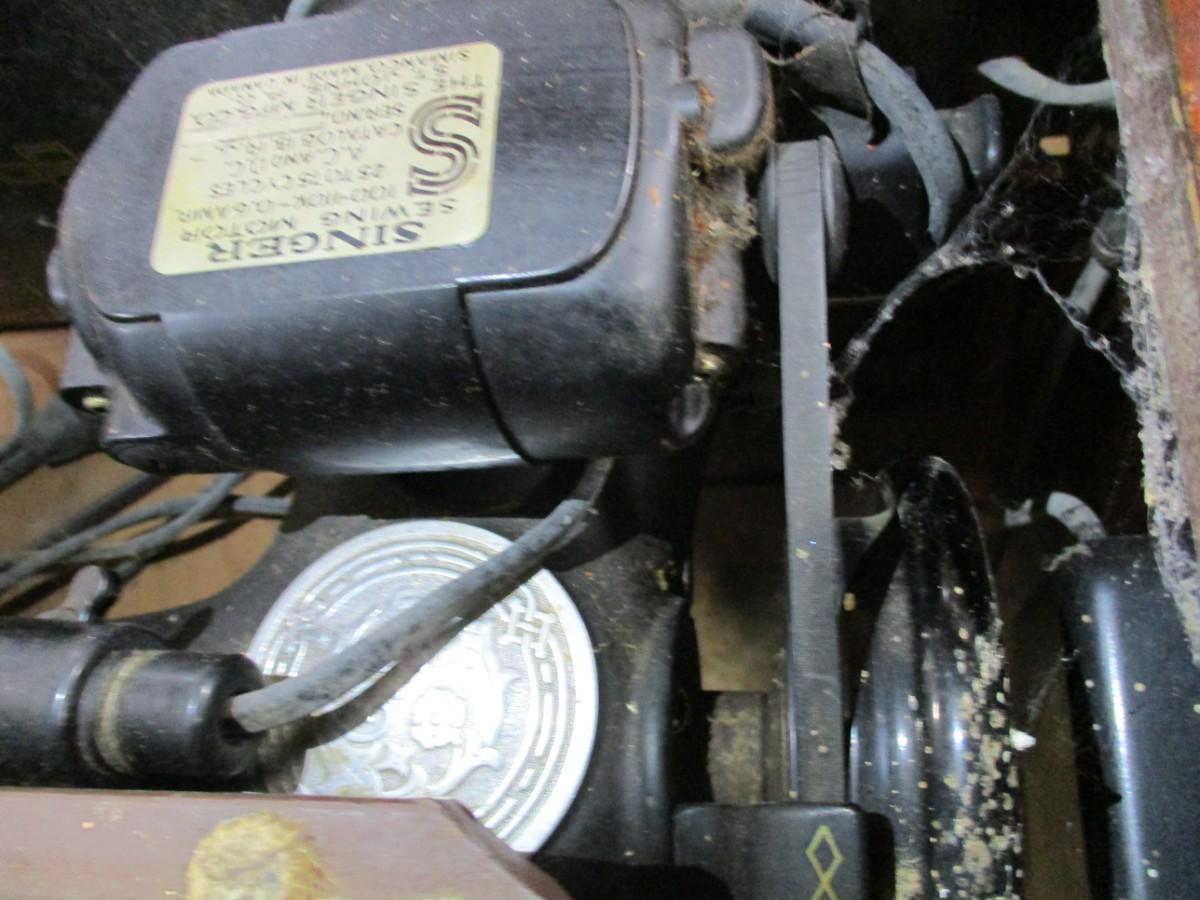 The hinges are rusted so we were unable to lift the machine up. The owner wanted to let you know the machine did work. It was owned by her mother who was a home ec teacher and a 4 h judge in the 1950's and 1960's