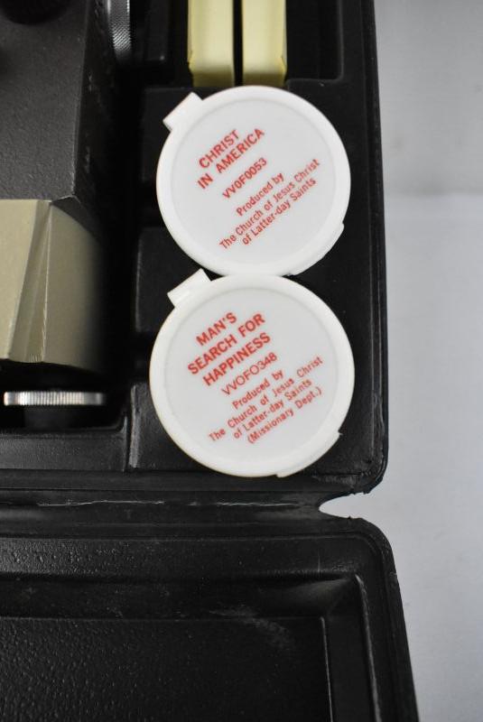 Singer SM400 Projector with Case, 2 Films, & 2 Cassette Tapes - Turns on, Appears to Work
