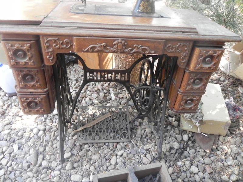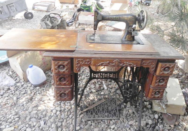 LOT 273  SINGER TREADLE SEWING MACHINE IN CABINET