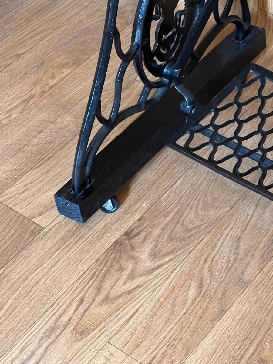Has been put on wooden blocks with wheels. Blocks can be removed. 30.25” H x 24.5” W x 20” D