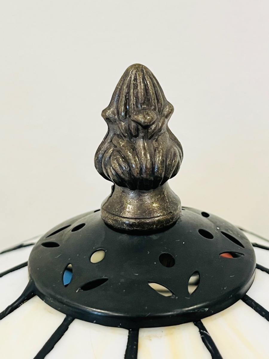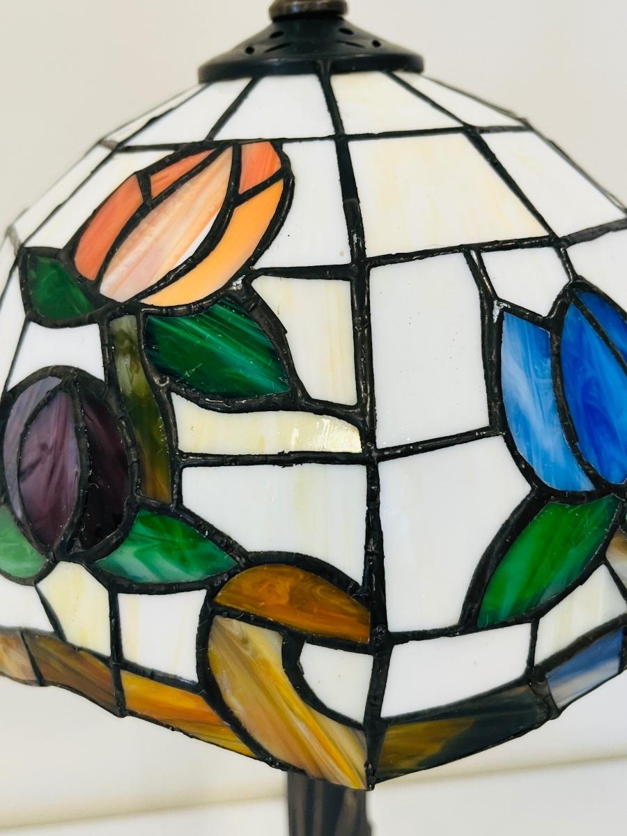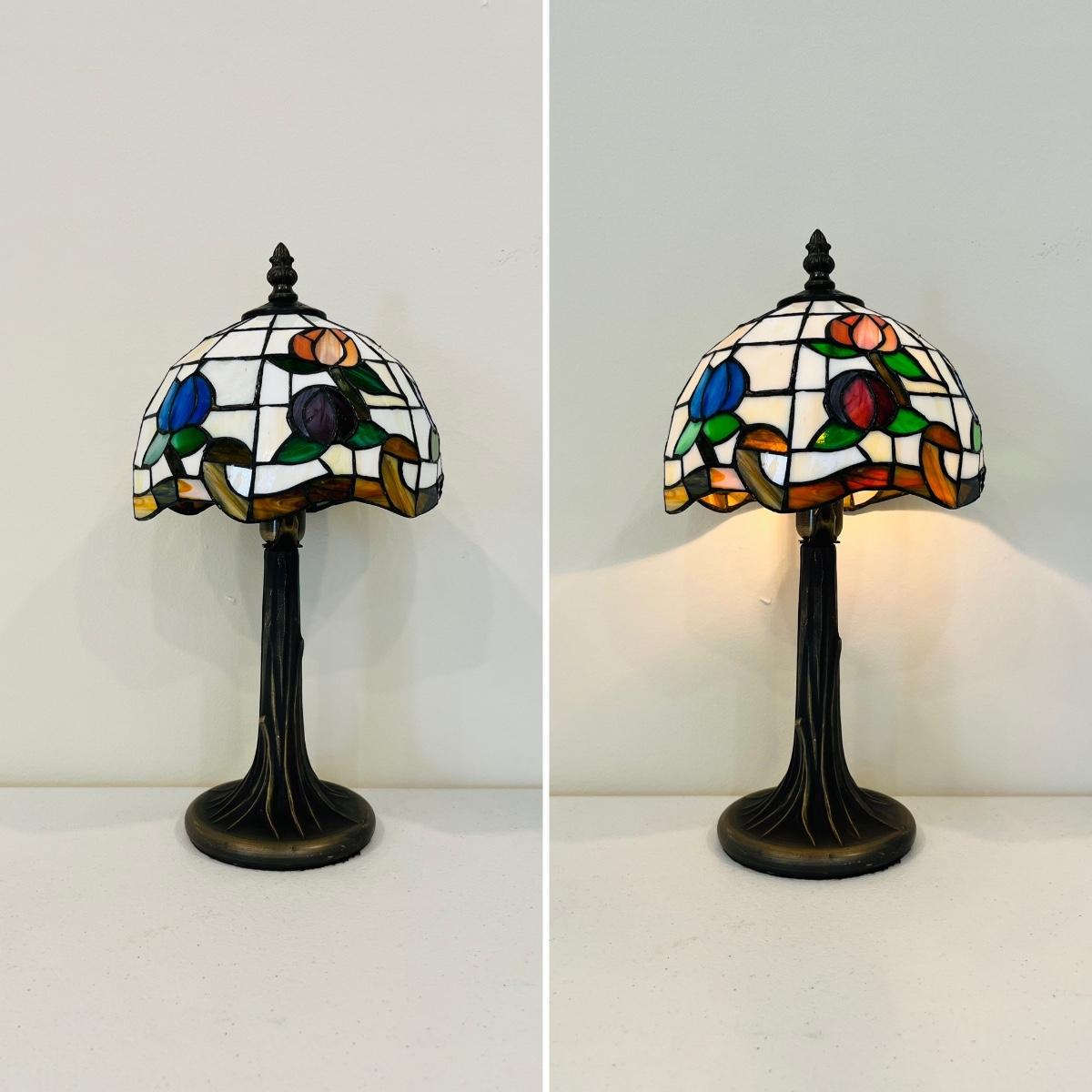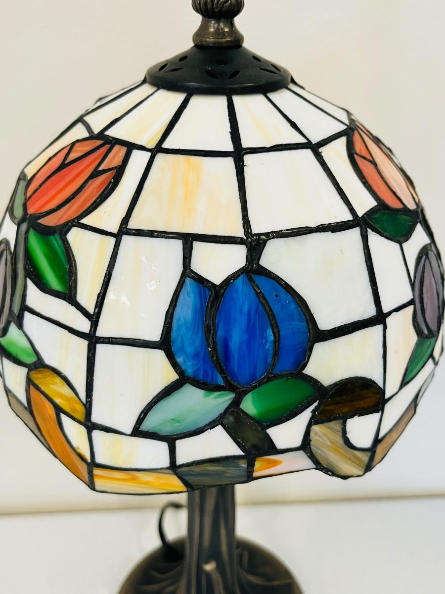 Single (1) ~ 14” Tall Tiffany Style Metal Base Table Lamp ~ Stained Glass Shade