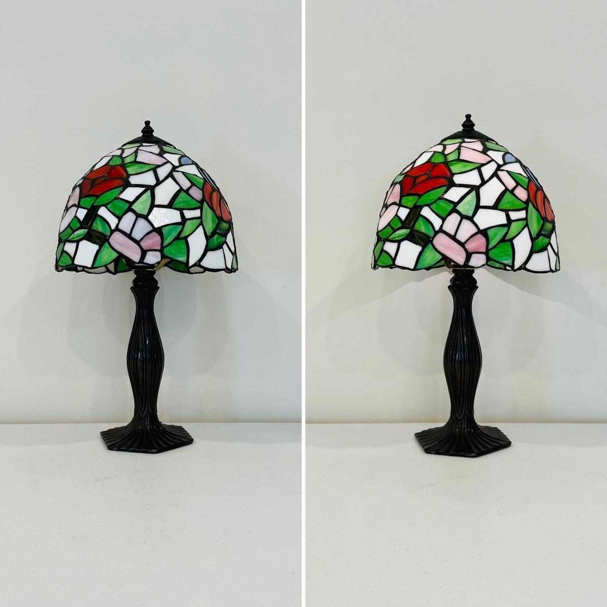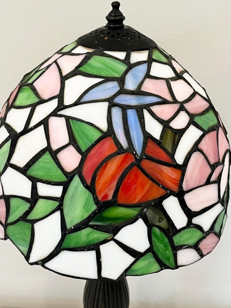 Single (1) ~ 14” Tiffany Style Metal Base Table Lamp ~ Stained Glass Shade
