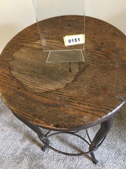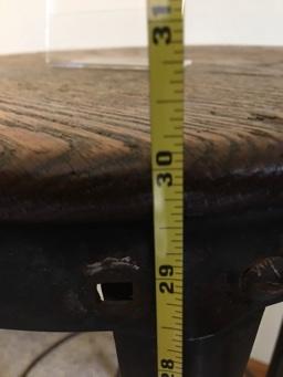 Single Antique Oak/Steel Ice Cream Parlor Bar-Height Stool