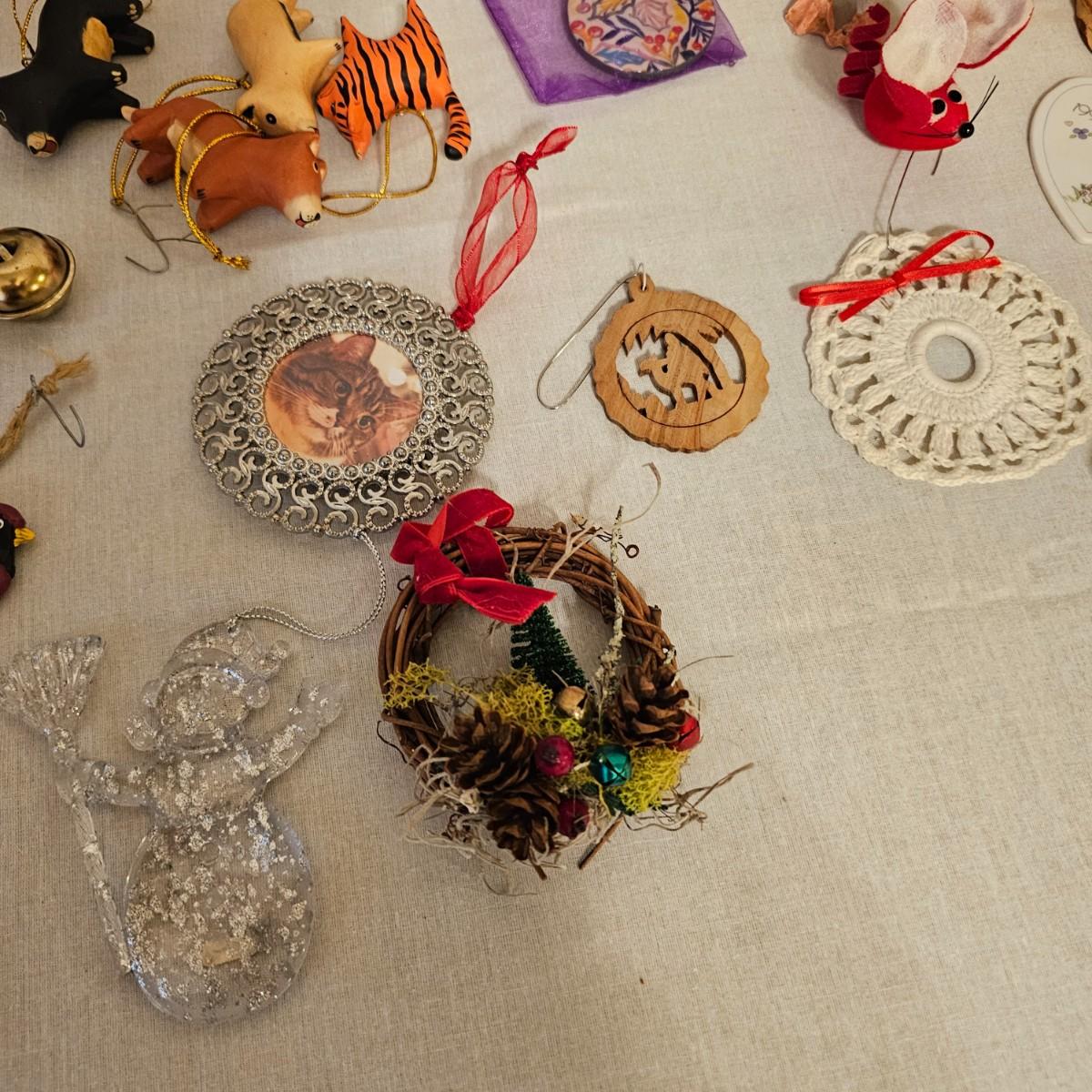 Cute individual ornaments, angels, animals, bells, Santas, more. Some boxes of mini size ornaments, set of four bird themed ornaments. See photos for details. Shipping available.