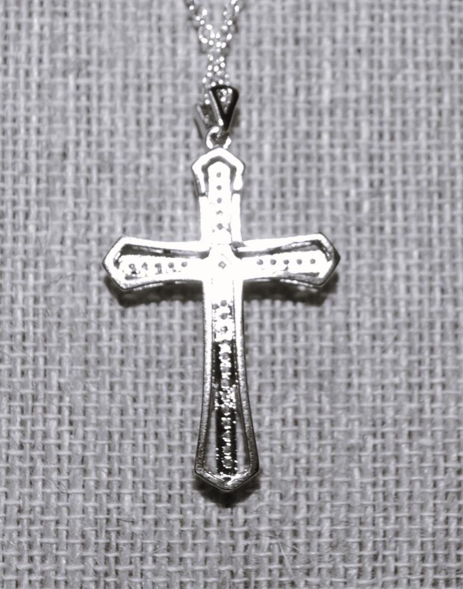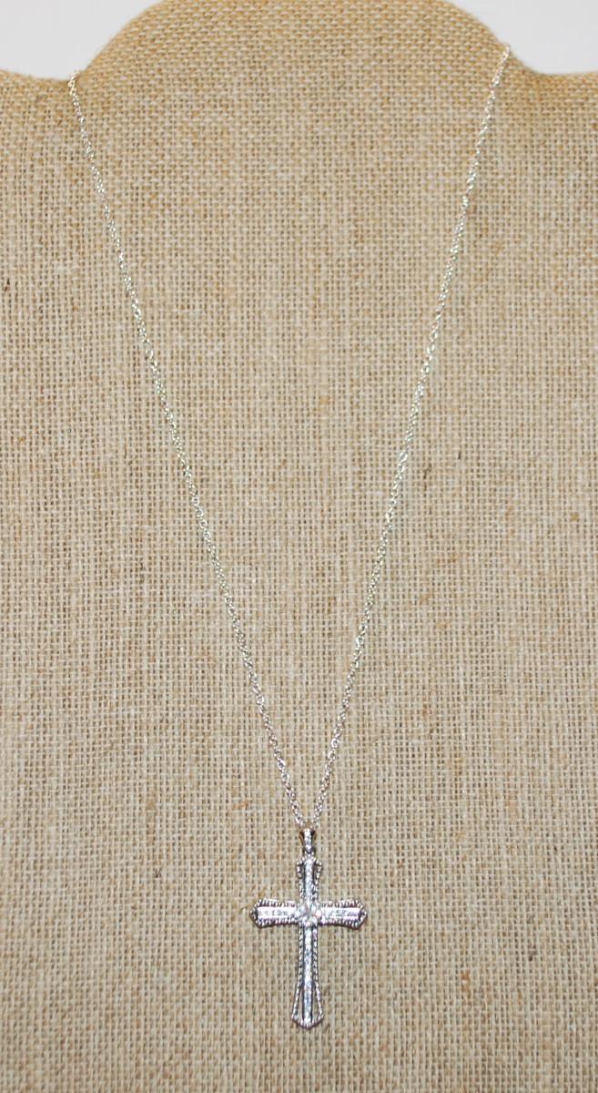 Single Center Stone Cross PENDANT (1½" x 1") with Lots of Clear Stone Accent Chips on a Silver Tone Adjustable Necklace Chain 15"-18" L