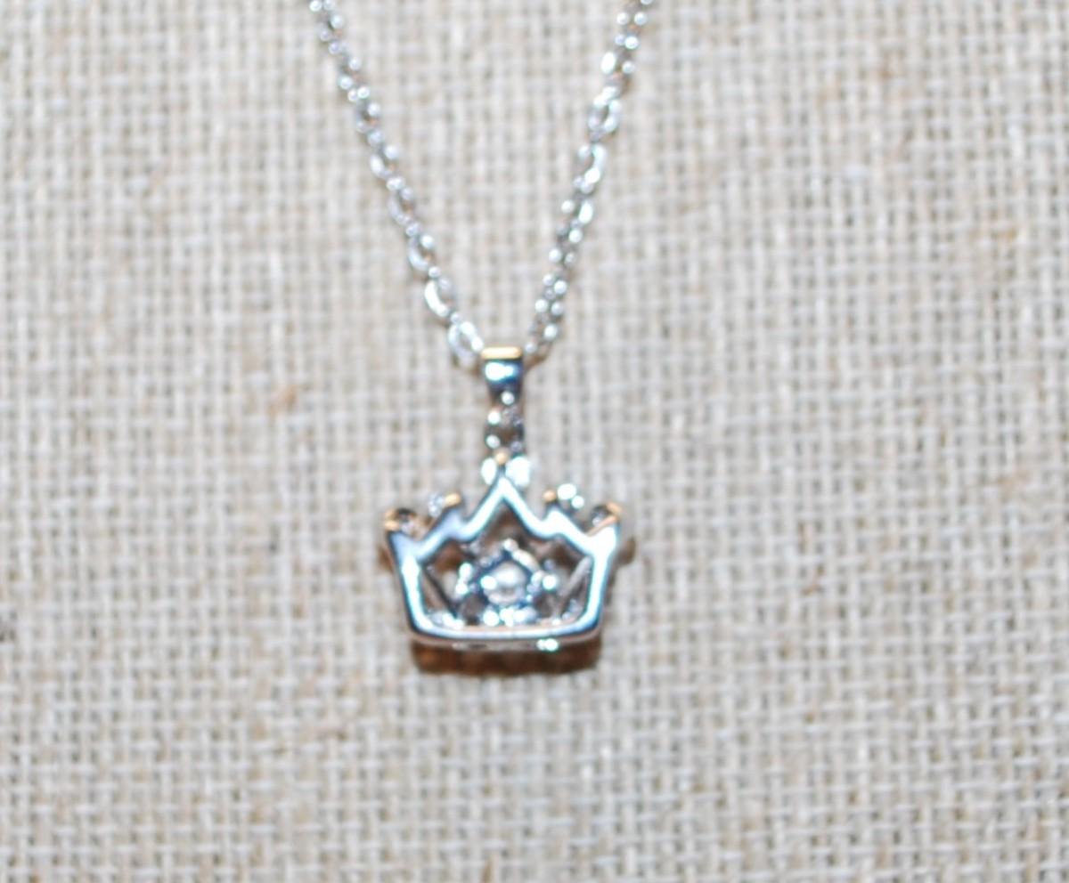 Single Clear Stone in a "Crown" Setting PENDANT (¾" x ¾") on a Silver Tone Necklace Chain 17" L