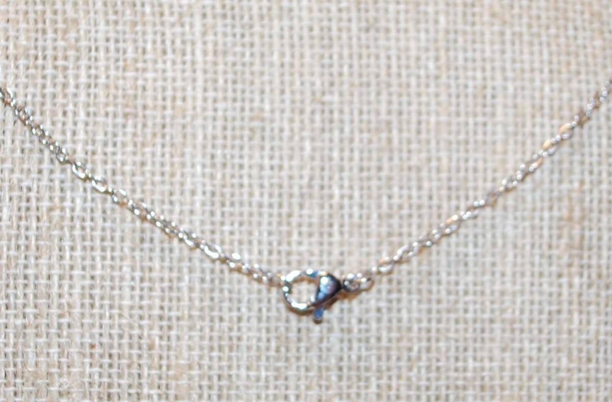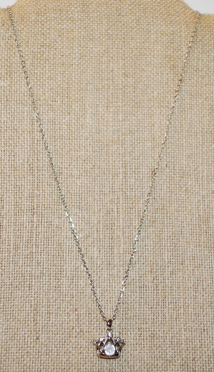 Single Clear Stone in a "Crown" Setting PENDANT (¾" x ¾") on a Silver Tone Necklace Chain 17" L