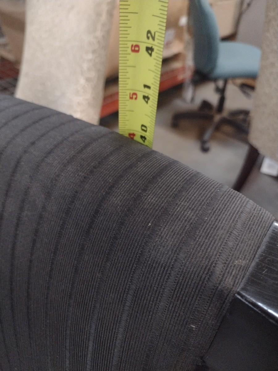 Single Commercial Grade Bow Arm Parlor Chair has some wear and scratches to the arms as shown.