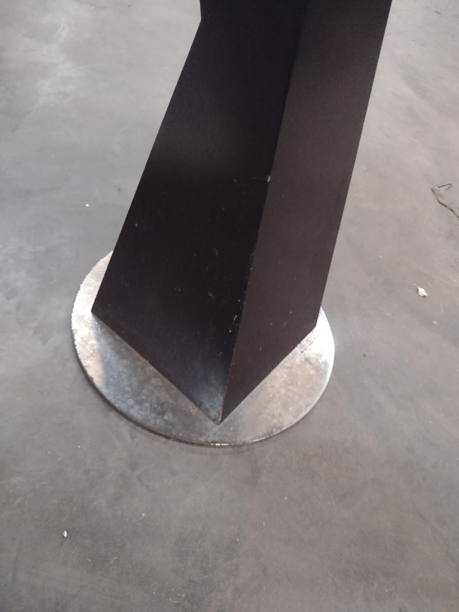 Single Contemporary Round Top Side Table with Glass Top and Metal Plate Base Wood Post
