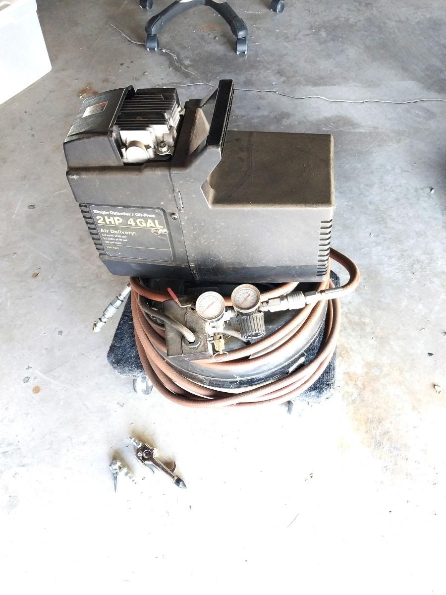 SINGLE CYLINDER/OIL FREE  2HP 4 GALLON COMPRESSER WITH AIR CHUCKS