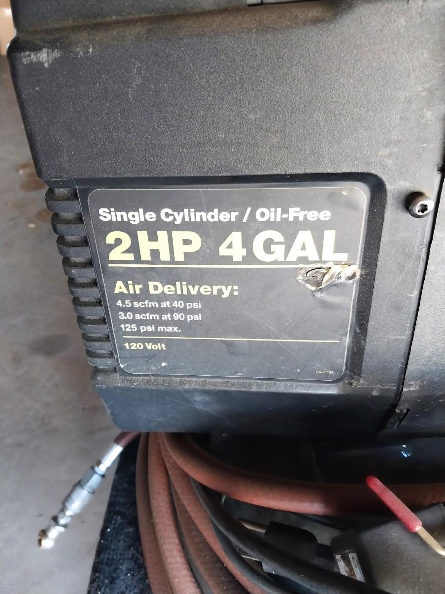 SINGLE CYLINDER/OIL FREE 2HP 4 GALLON COMPRESSER WITH AIR CHUCKS