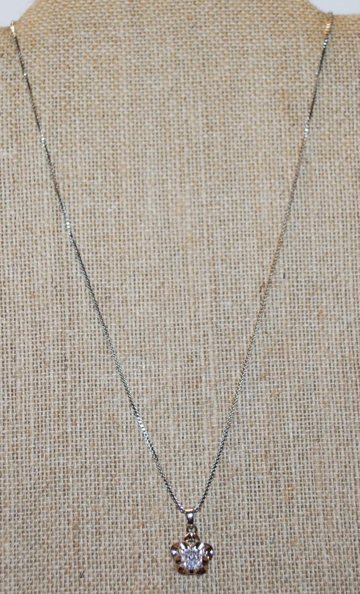Single Diamond Style Flower Petal PENDANT (½" Diam.) on a Silver Tone Necklace Chain 18" L