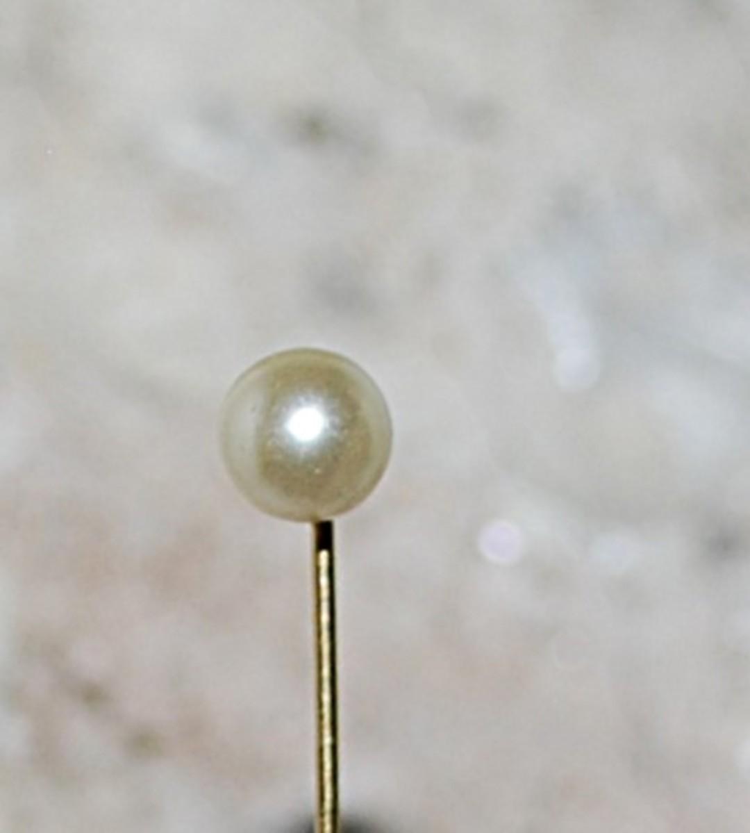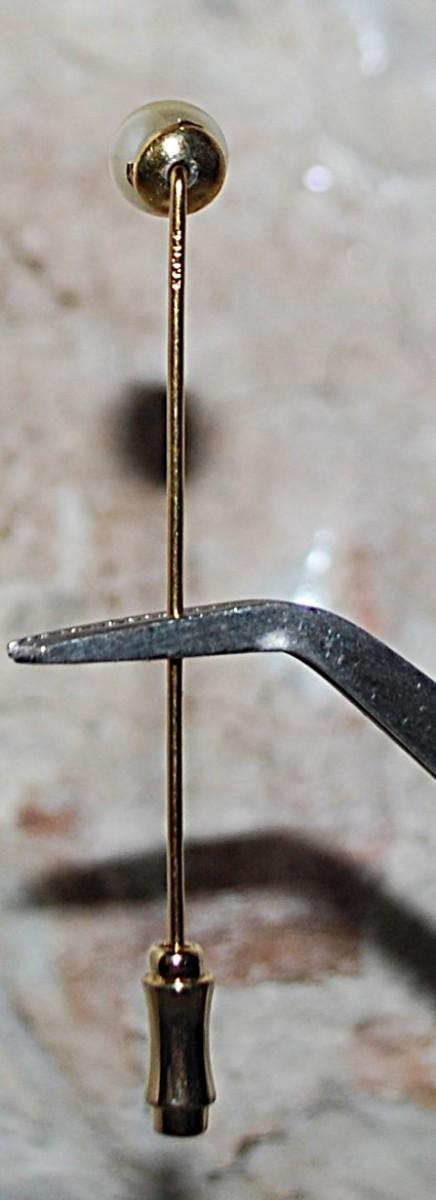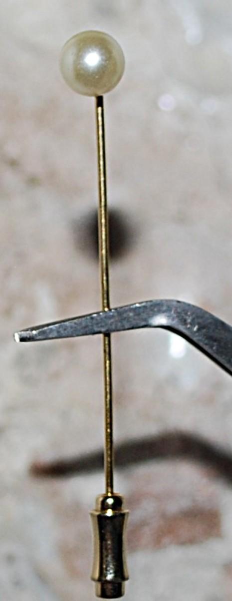 Single Faux White PEARL PIN (2¼" L) with Pin Guard on a Gold Tone Setting