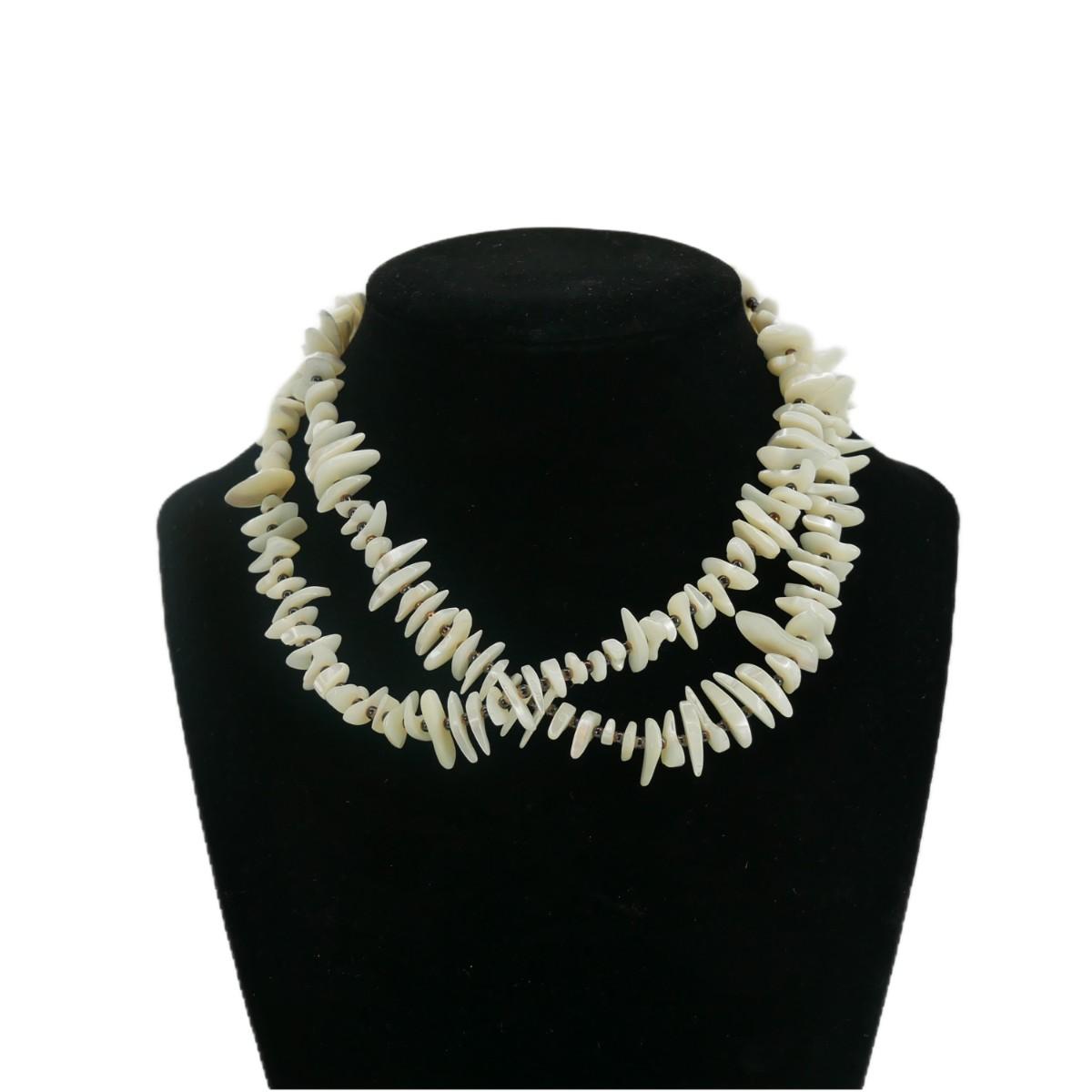 Beautiful single strand shell pieces necklace with stone. Measures approximately 28" in total length, weighs 45g.