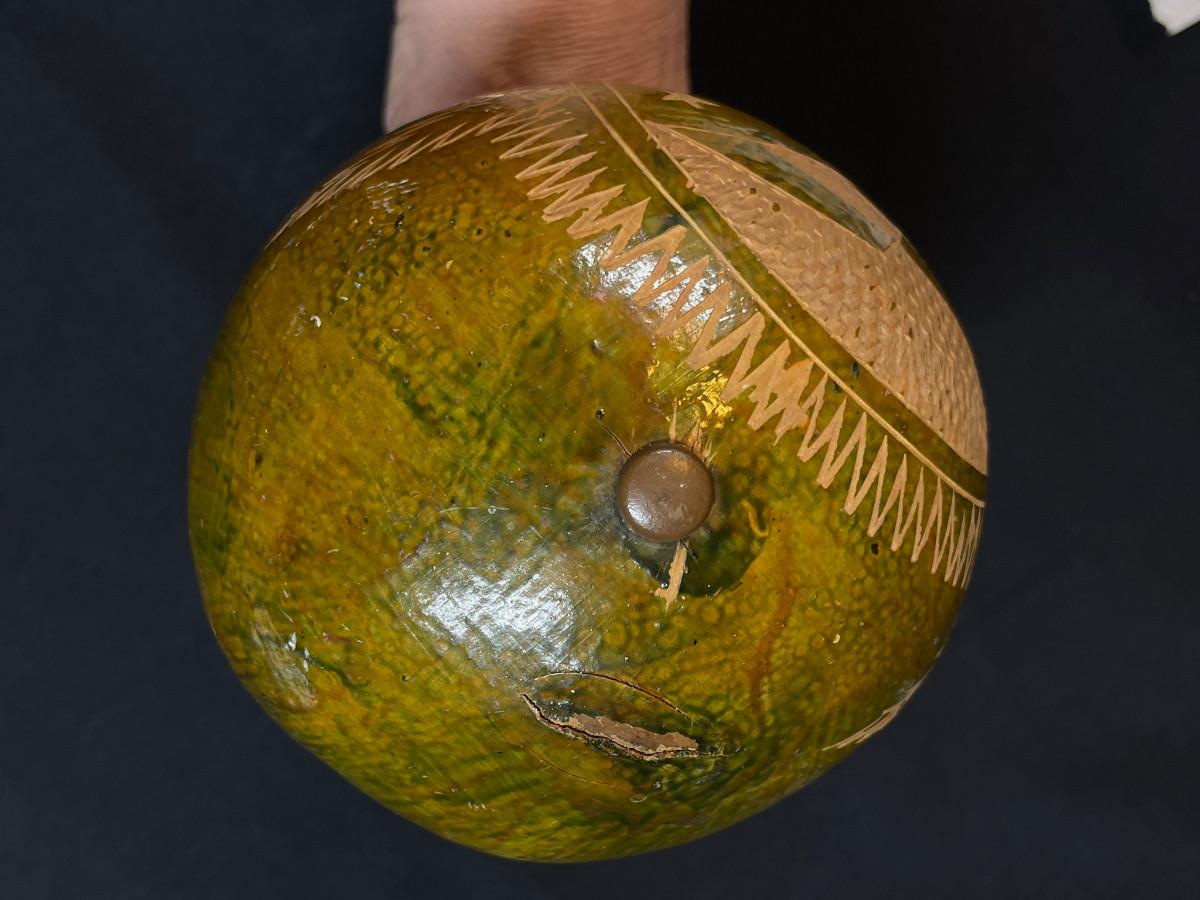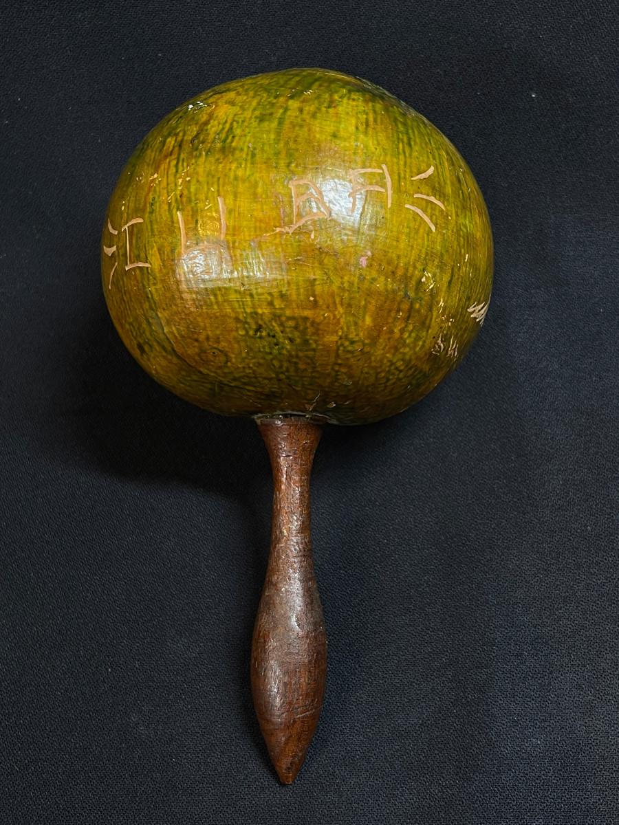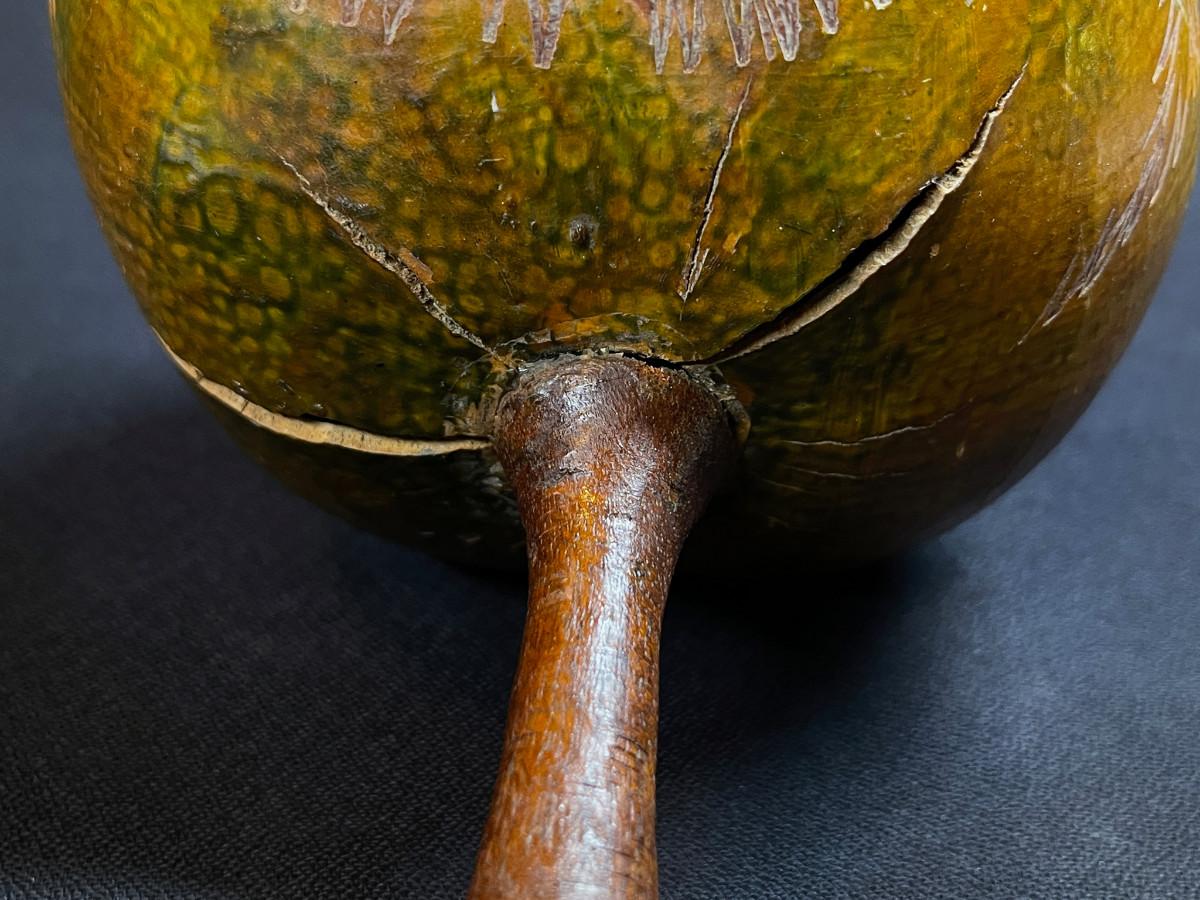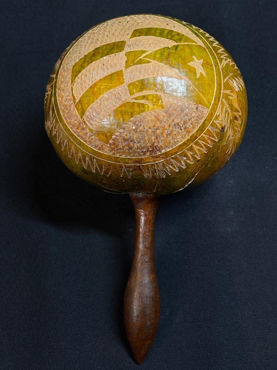 Single Vintage Cuban Natural Gourd Maraca marked Cuba