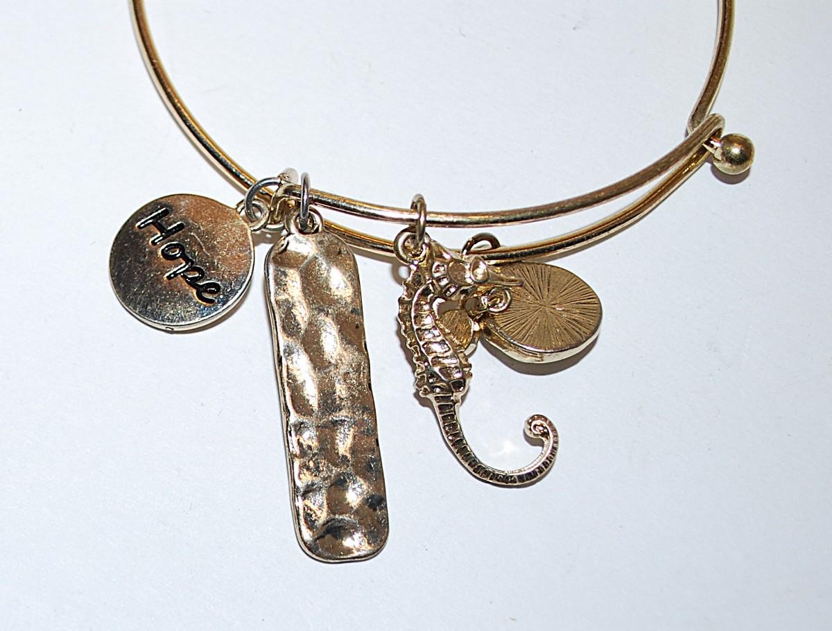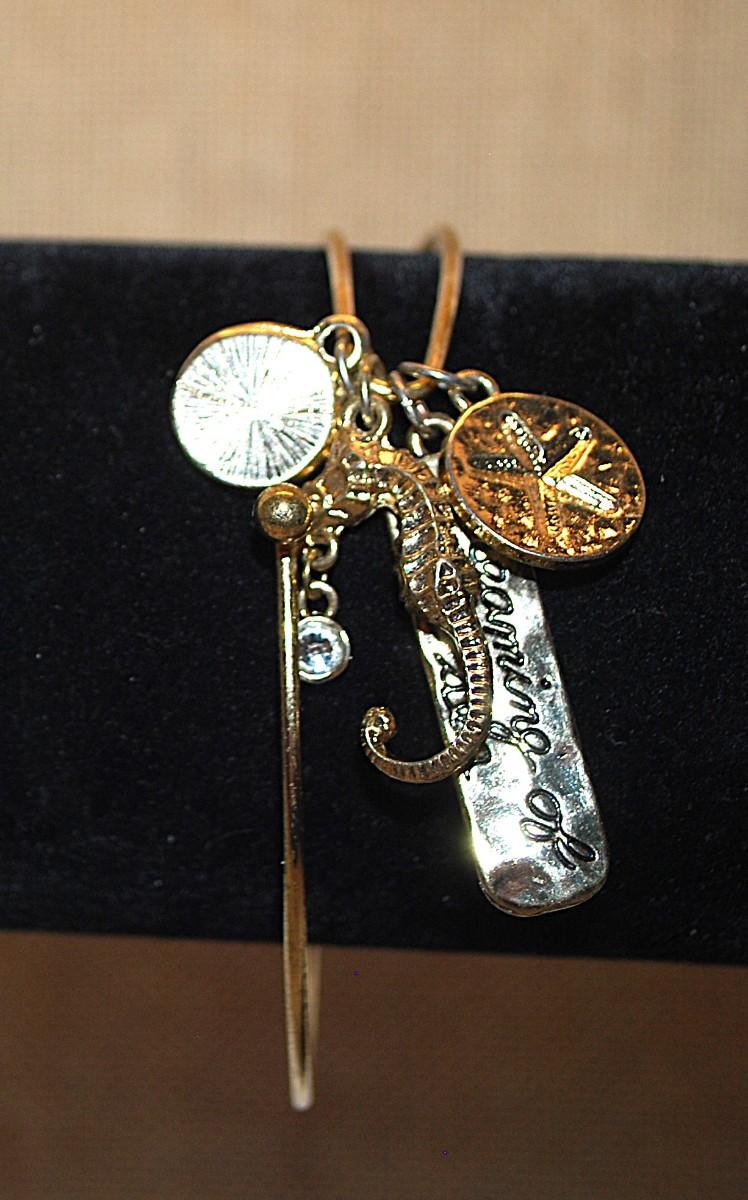 Single Wire CHARMS-STYLE BANGLE BRACELET (2¼" Opening) With "Seahorse, Hope, Dreaming of the Sea Charms