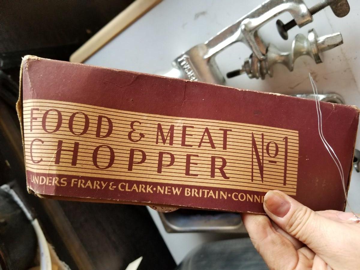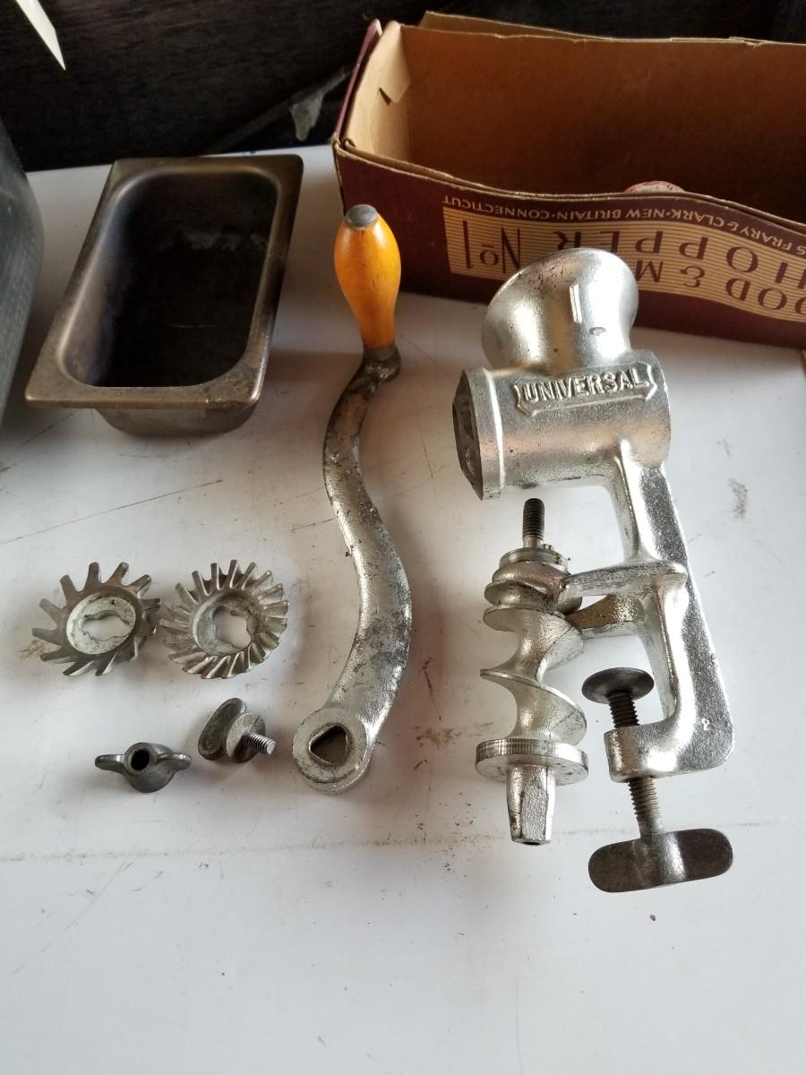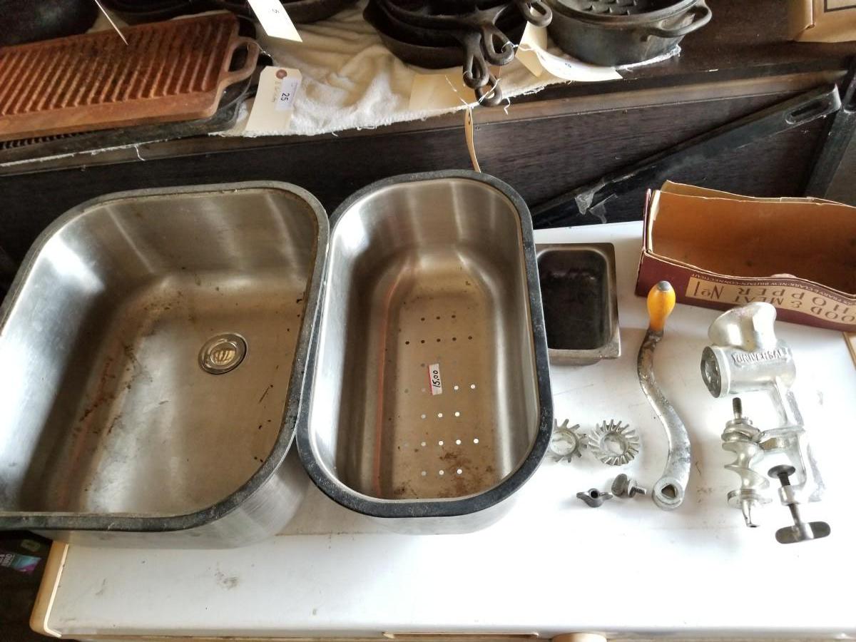 Small metal sink, strainer and Universal food and meat chopper No.1