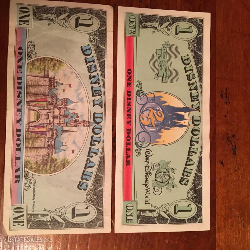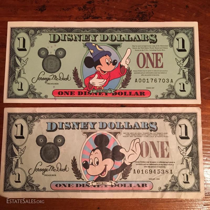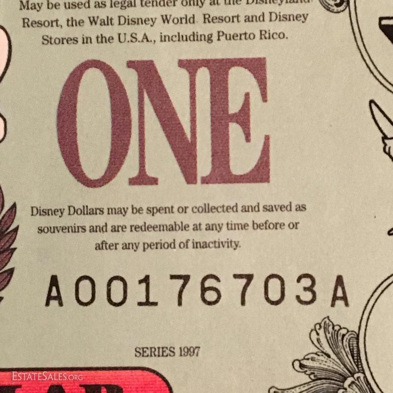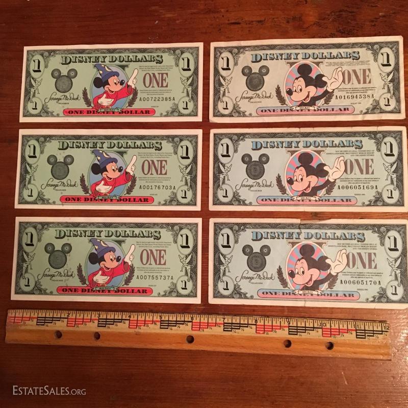 Six 1990's "DISNEY DOLLARS", Three 25th Anniv