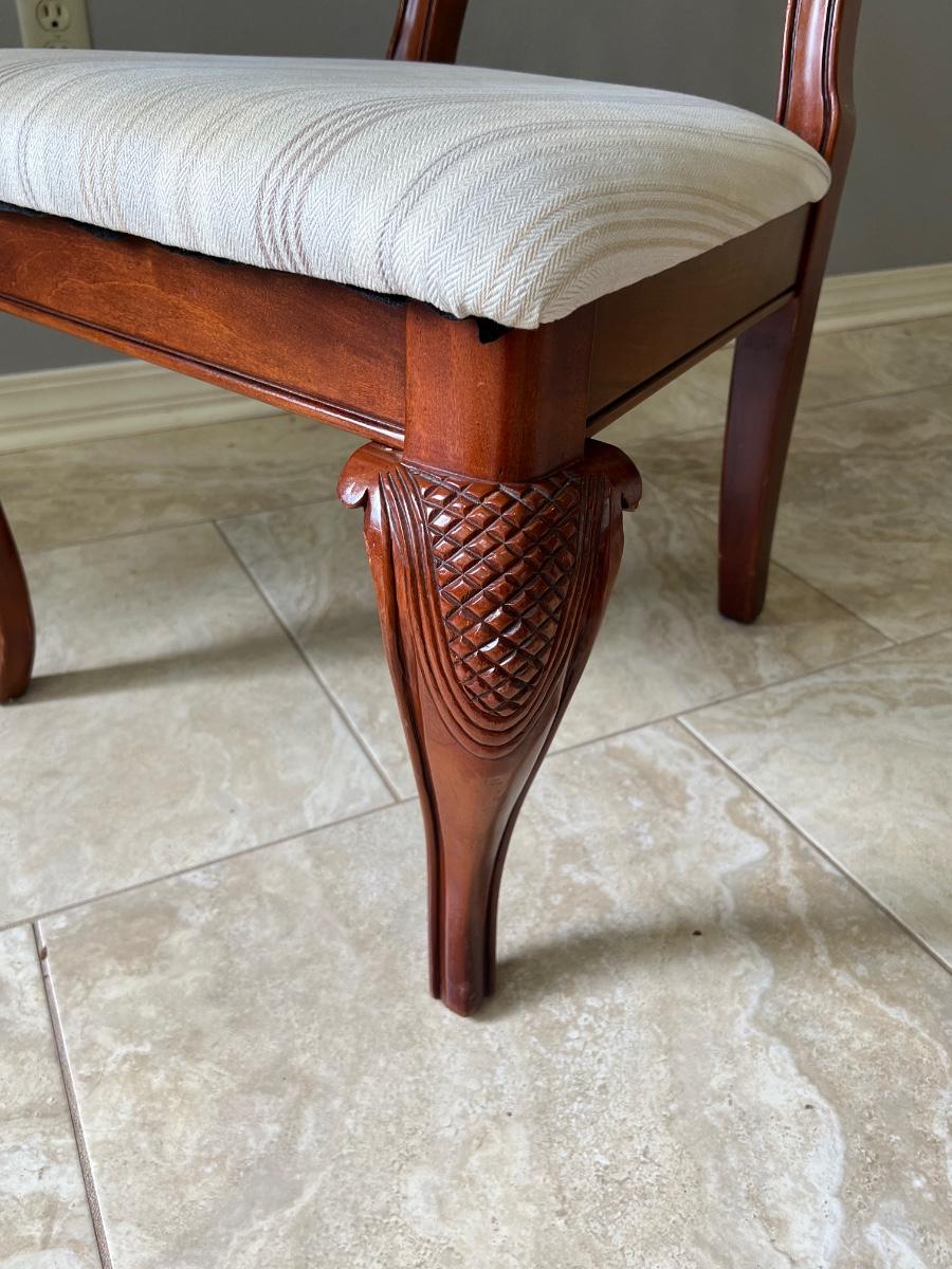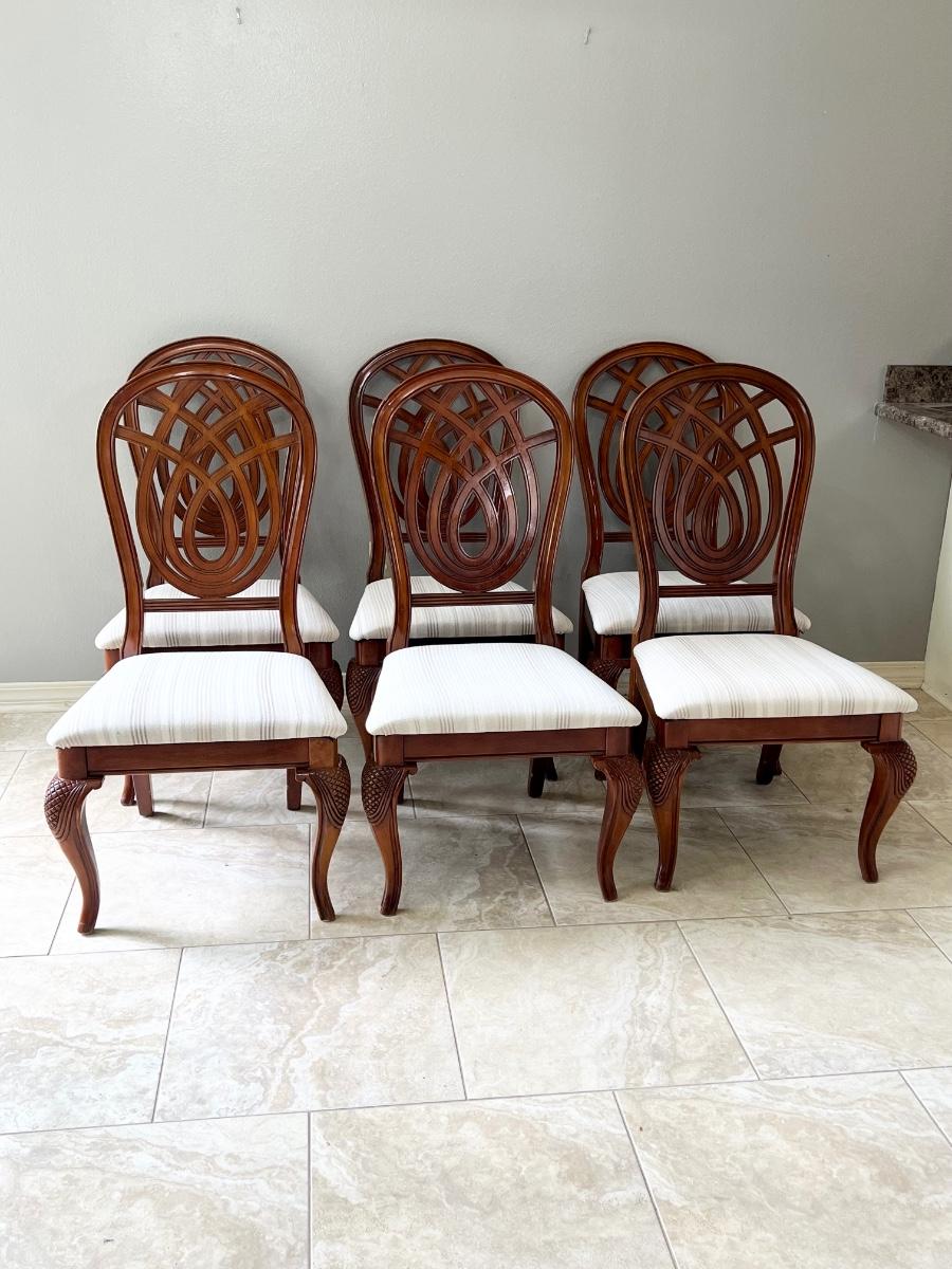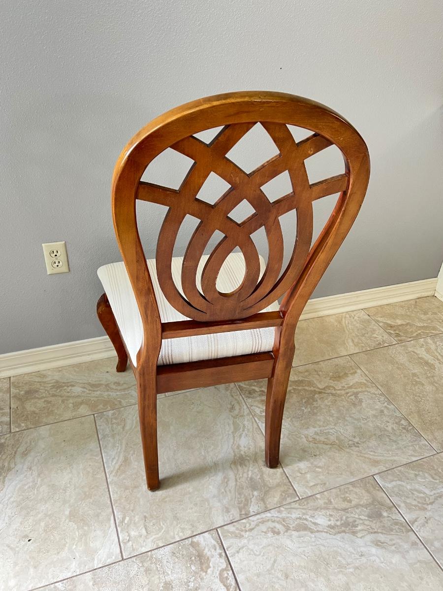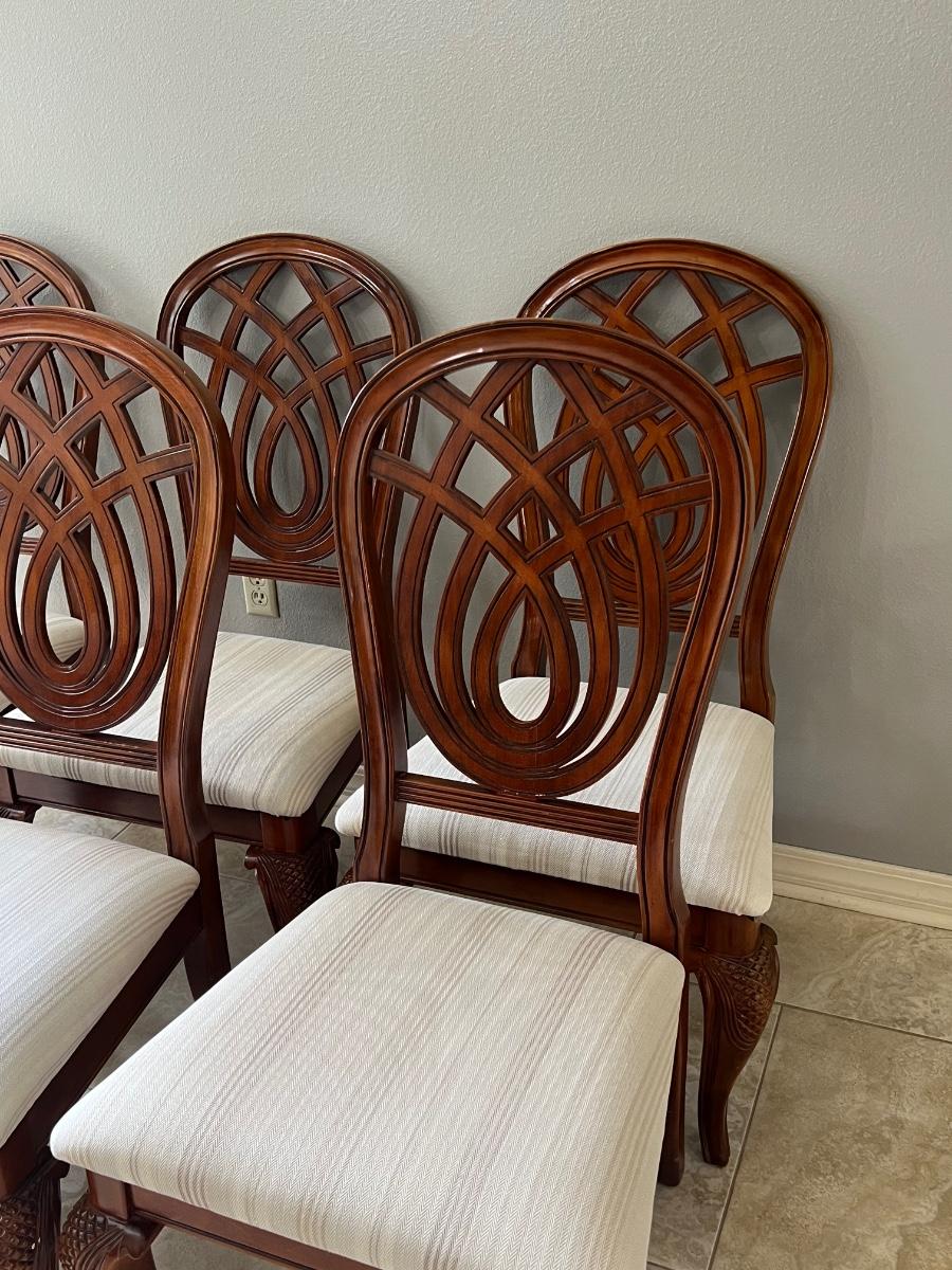 No brand ~ A couple of chairs show minor fading from the sun by the window, see photos ~ Have been sanitized, disinfected, & deodorized ~ 42” H x 23.5” W x 27” D