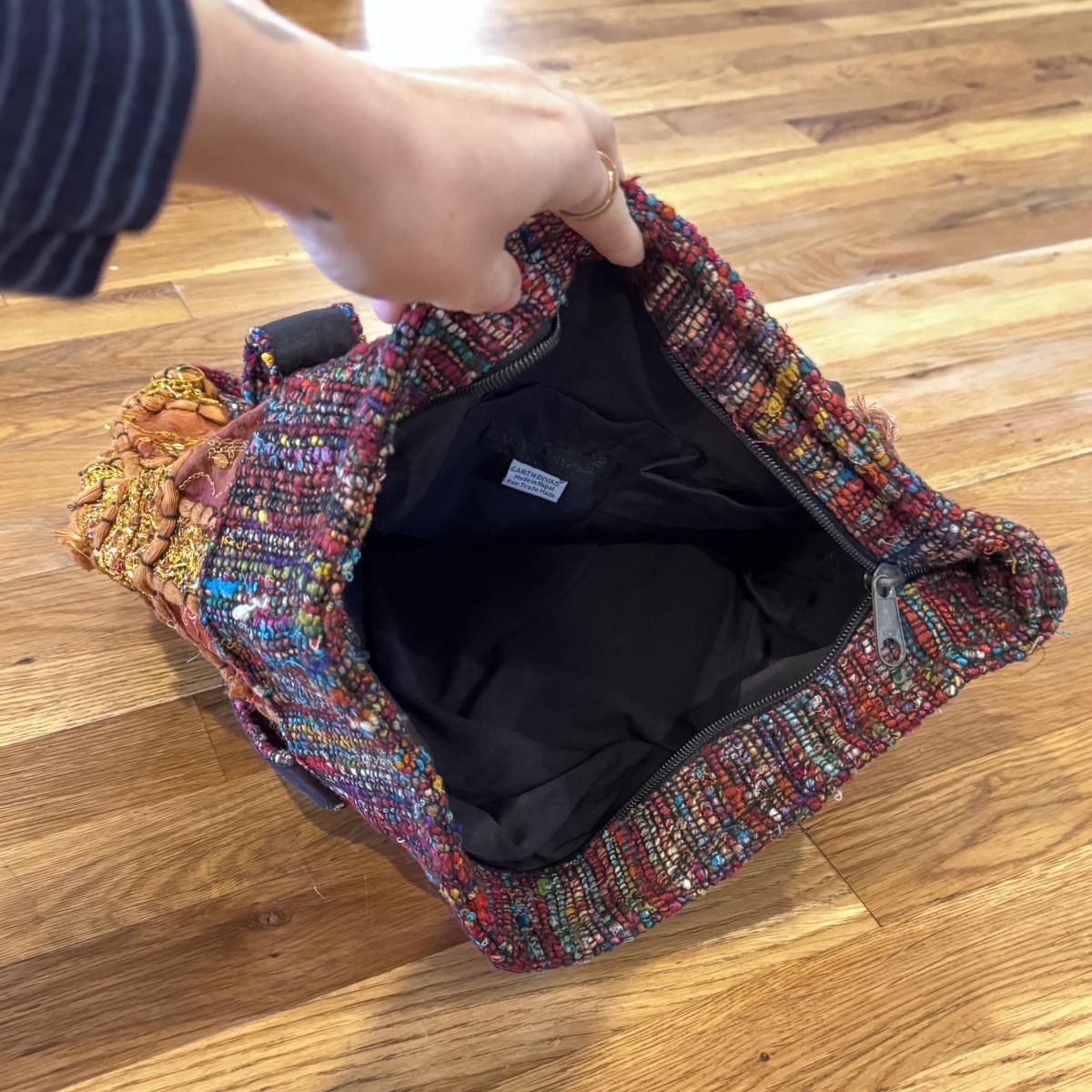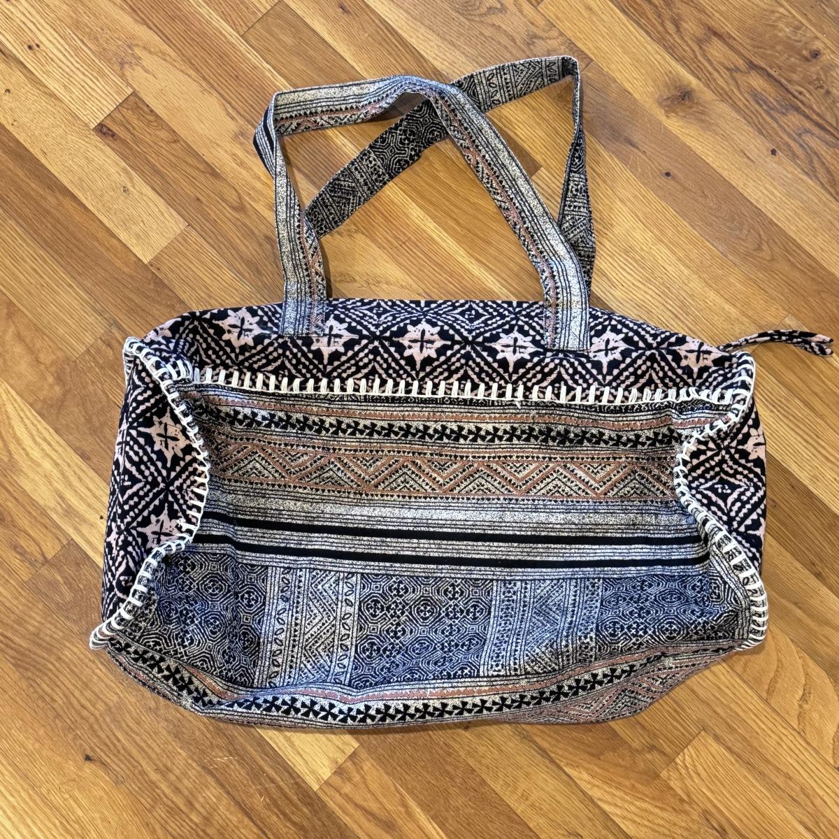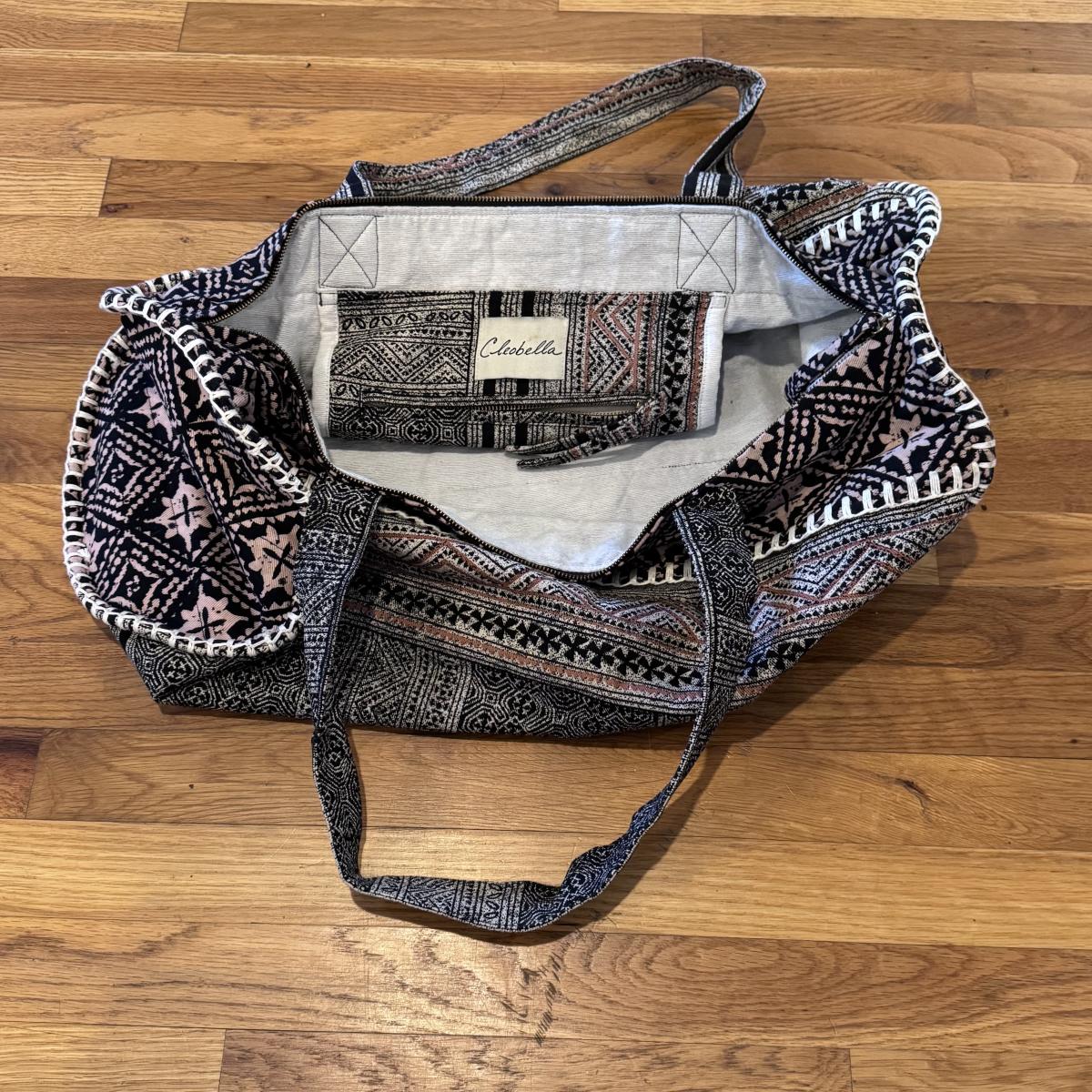 This lot includes six variations of bohemian bags. You’ll find one duffel bag by Cleobella, one red shoulder bag, one vegan leather Handbag Republic Classic duffel, one Earth Diva’s multi-color shoulder bag, and two unlabeled boho shoulder bags. See pictures for details. The largest duffel is the Cleobella bag that measures 23.5” x 15” x 11”H. Shipping available.