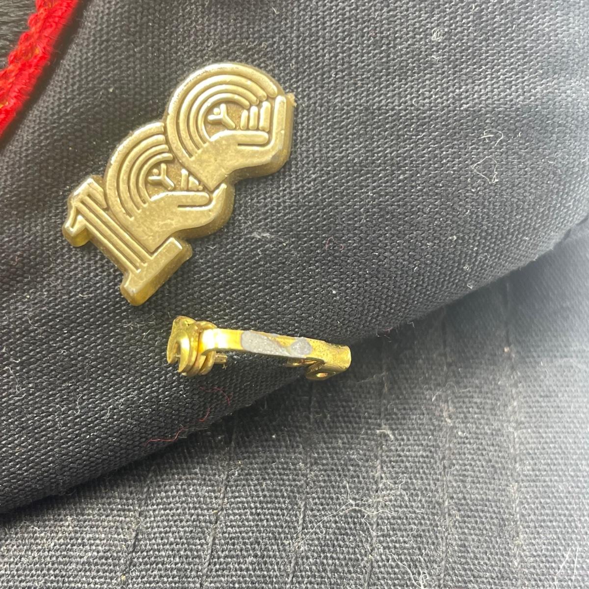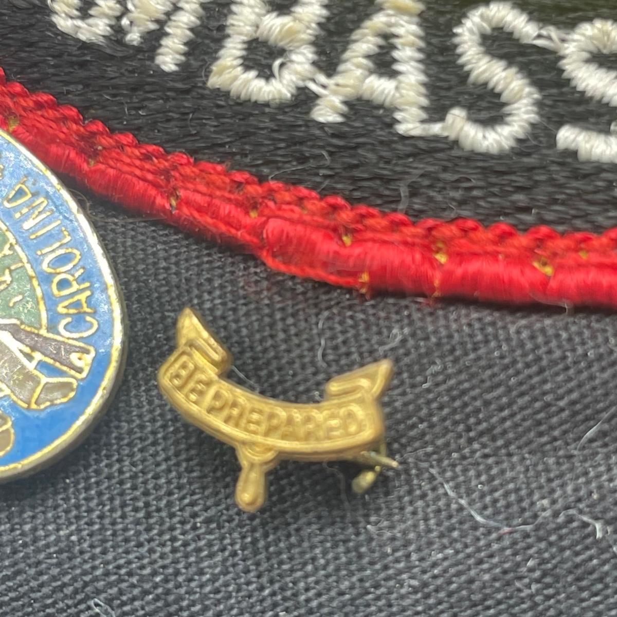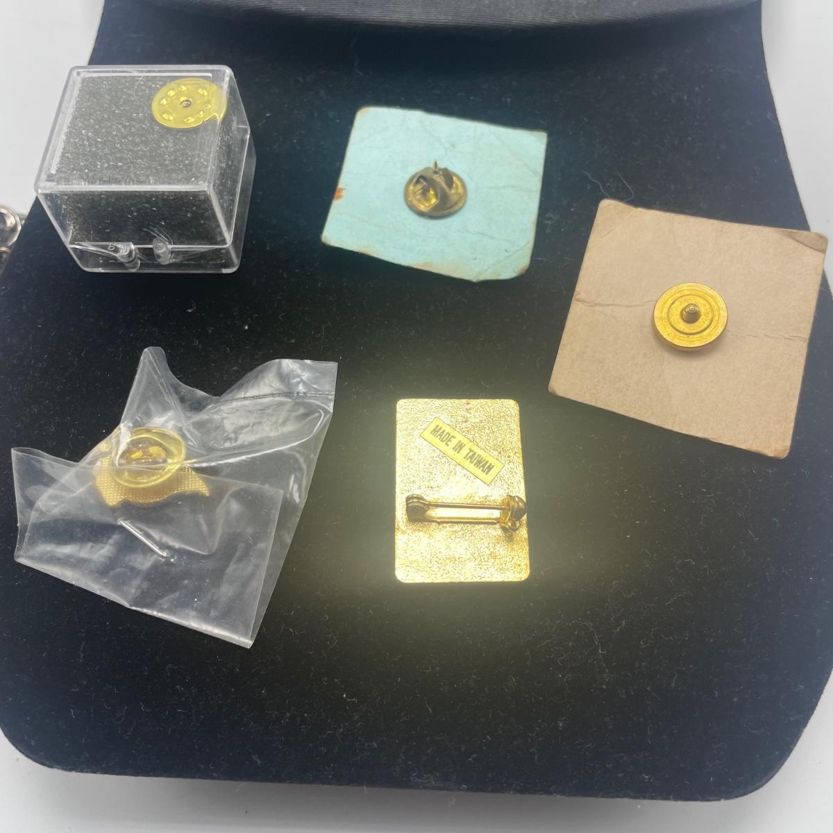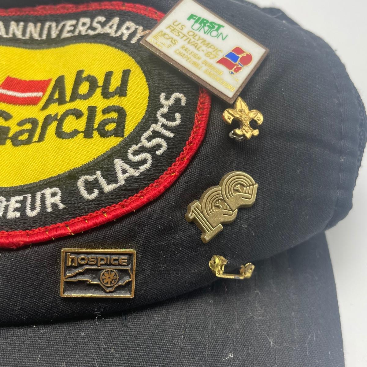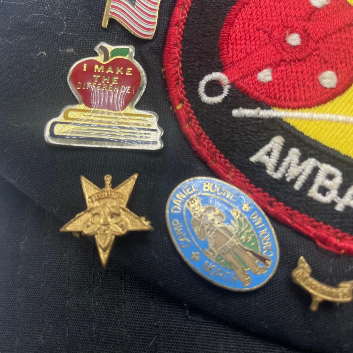 Six brooches and twenty four pins altogether here plus a black baseball cap.