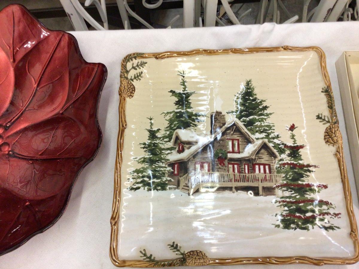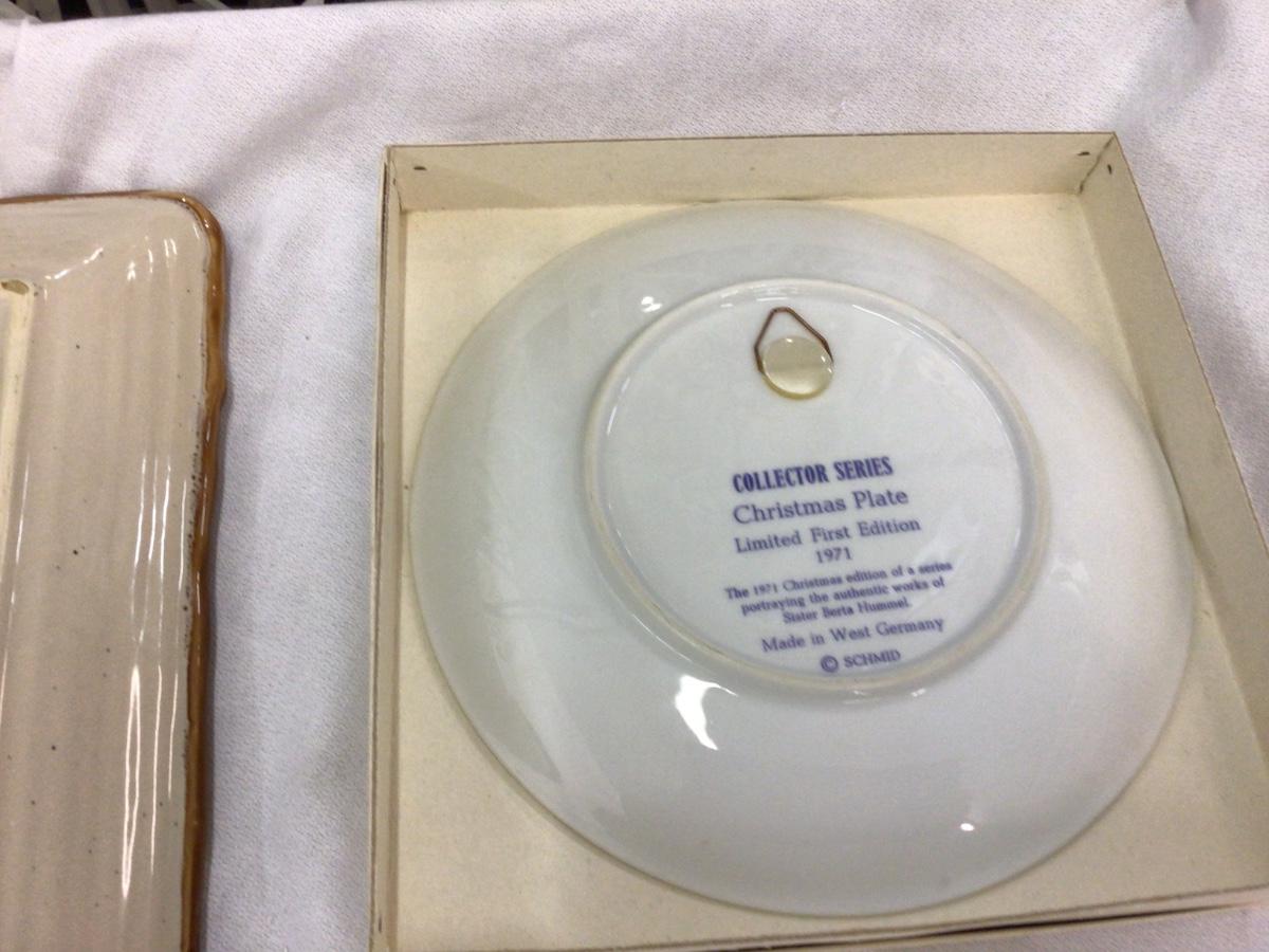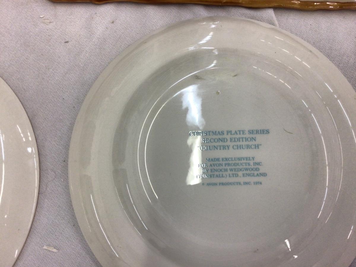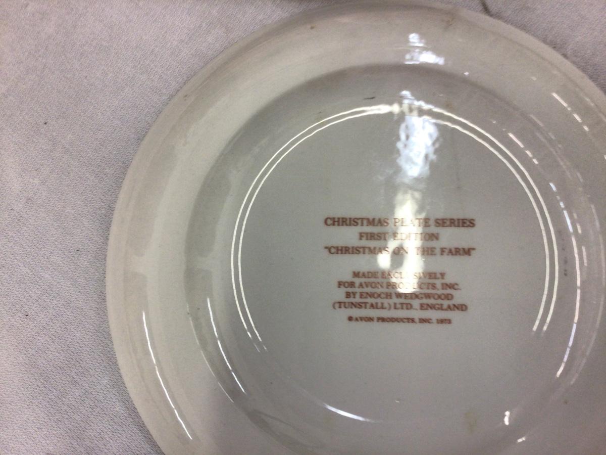 You get a poinsettiaplate, winter scene plate, Hummel Collectible plate Two Avon Christmas plates and a Denmark Christmas plate.