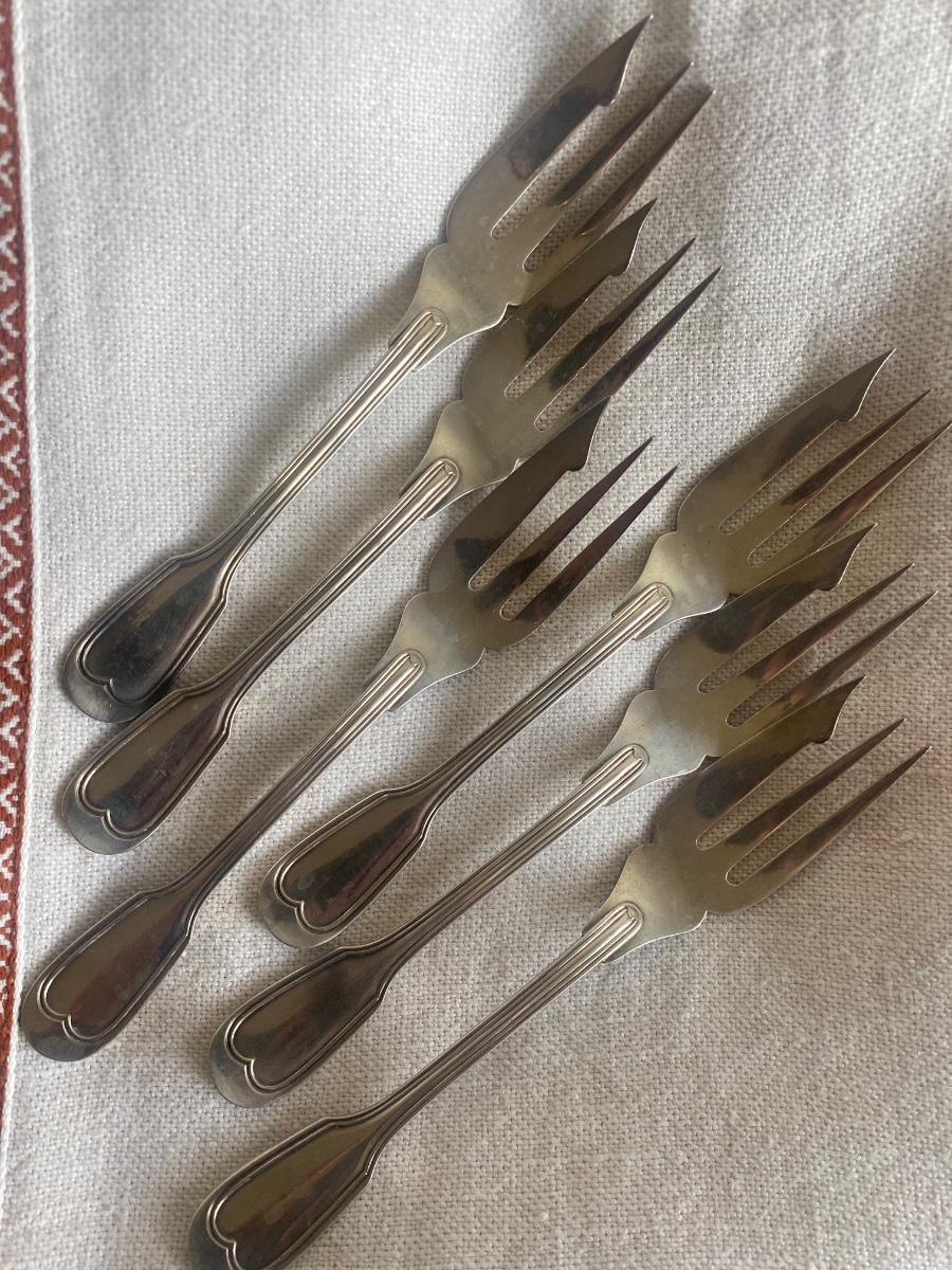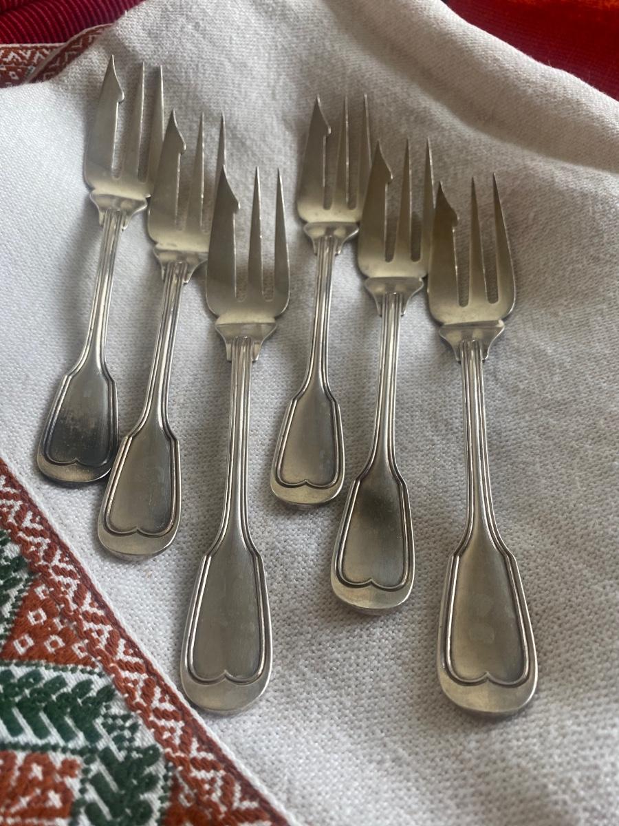Six Christofle pastry/dessert forks silver plate 19th c
