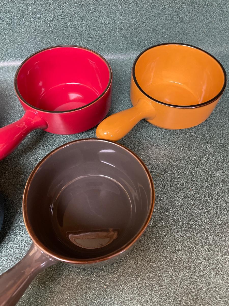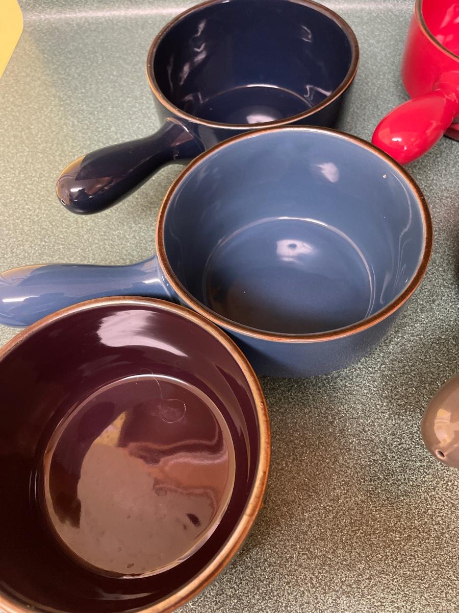 Six Crockery Artisan Stoneware Bowls with handles - great for soup or gumbo