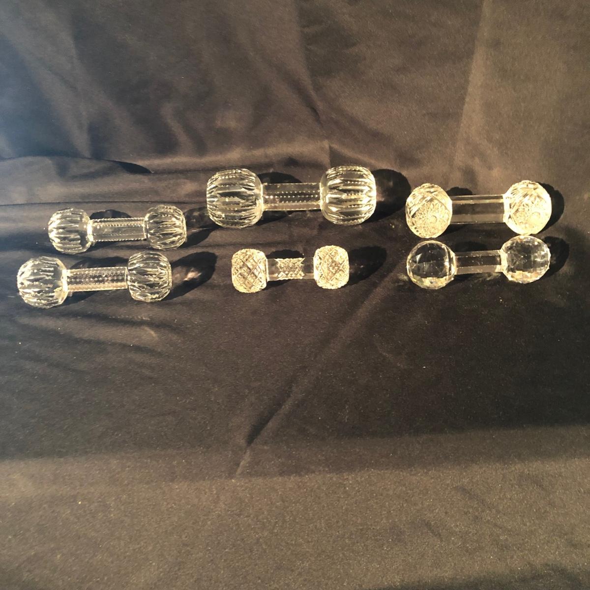 This lot includes six knife rests which appear to be crystal. The biggest one is over 5.5” long with the shortest one measuring 3.5” long. Shipping Available.