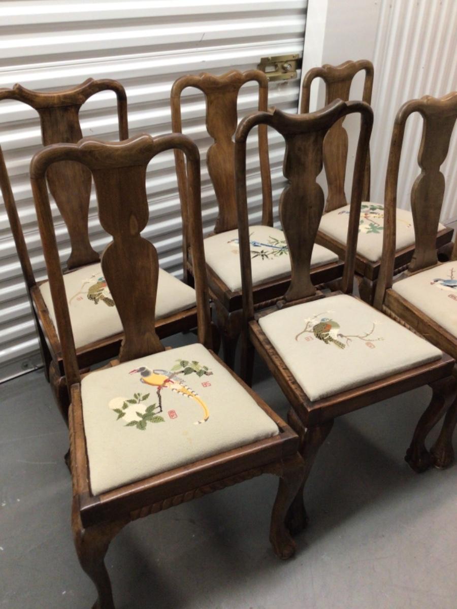 Needlepoint bird motif seats. Each measures 22”w x 20”d x 41”h. Some seats have stains. You must bring help to move this item into your vehicle. Local delivery may be able available at cost to the buyer. If you need an item to be delivered then please coordinate with us once you have purchased the item. Pick Up of Purchased Items will be on Saturday the 16th at Morningstar Storage in Bluffton, SC. 1110 Fording Island Rd, Bluffton, SC 29910. At the end of the sale todayI will send out a SignUpGenius link to the winning bidder to schedule your your pick up time along with a contact phone number.