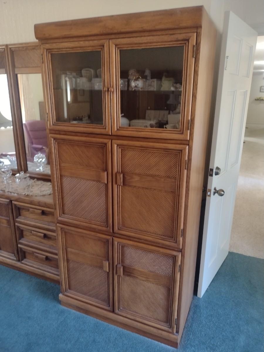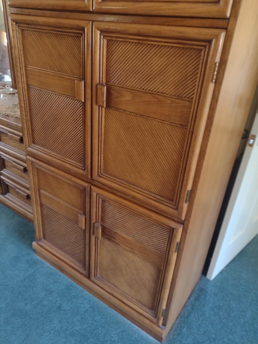 Six Door Display and Media Cabinet Rattan Design Finish