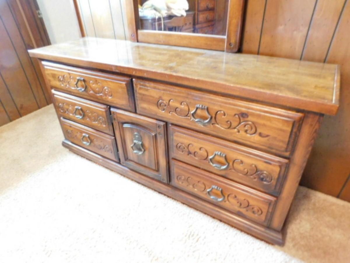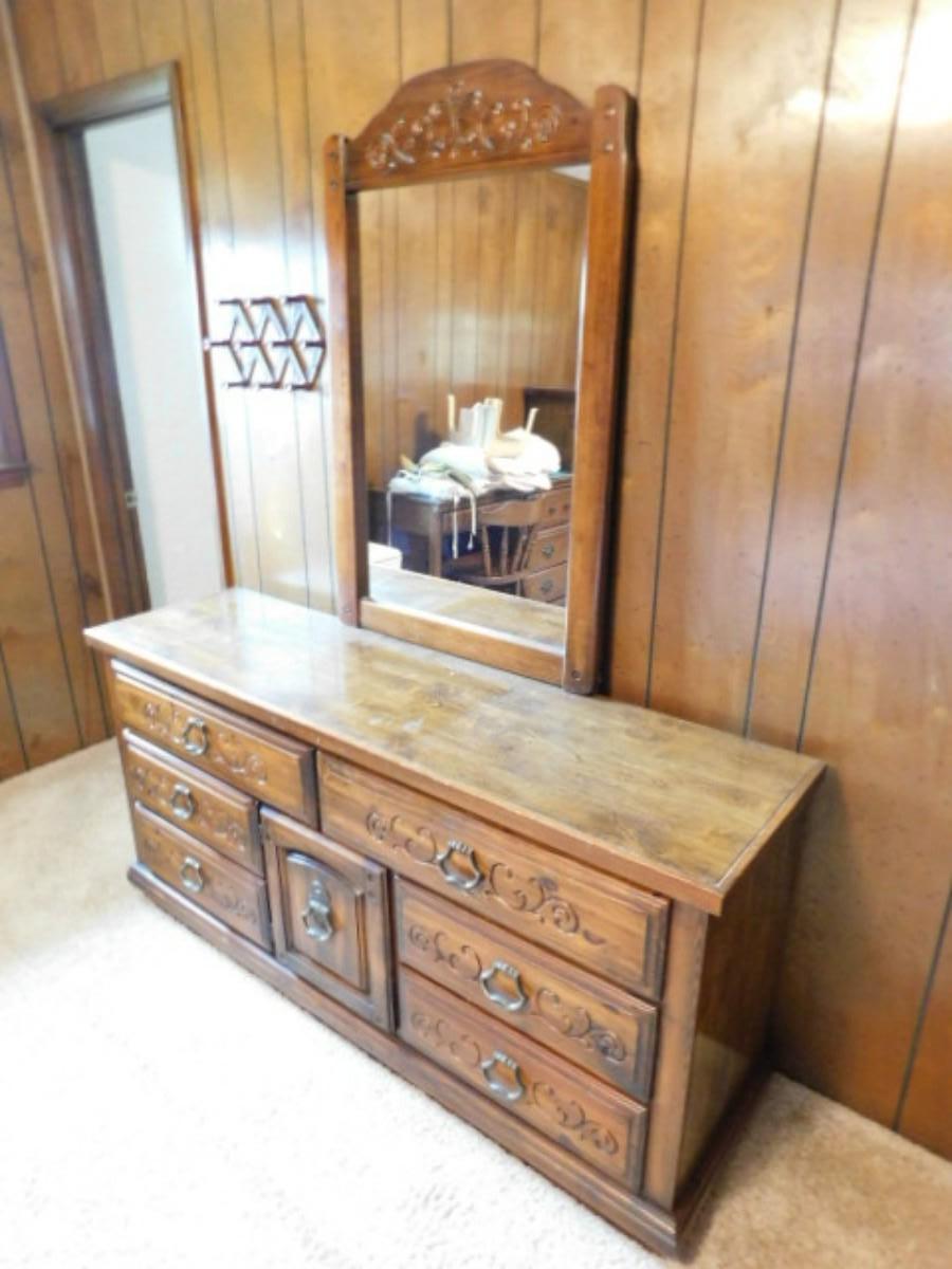 Six Drawer Stretch Dresser with Mirror by LEA. Upstairs item. Please bring assistance to remove from home