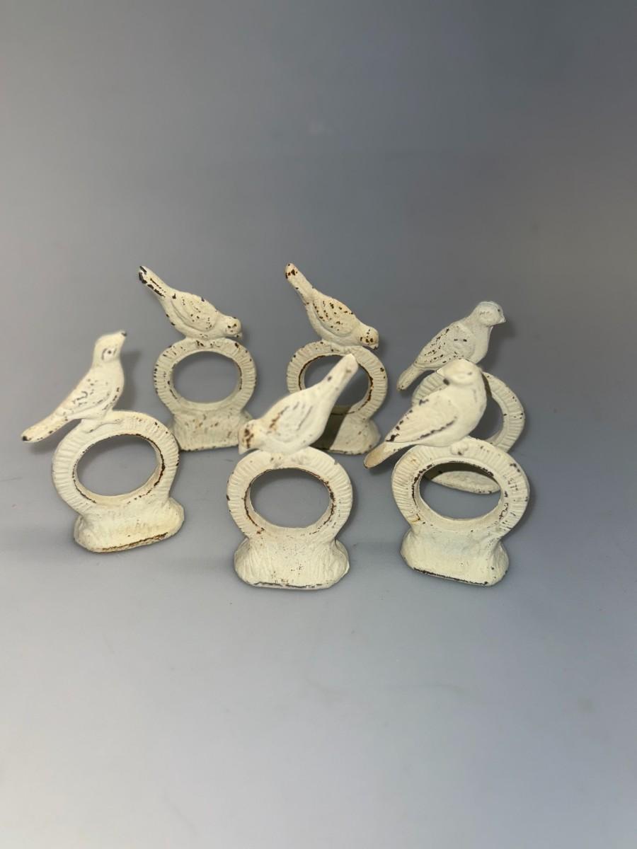 Six Farmhouse/Rustic Cast Iron Bird Napkin Rings