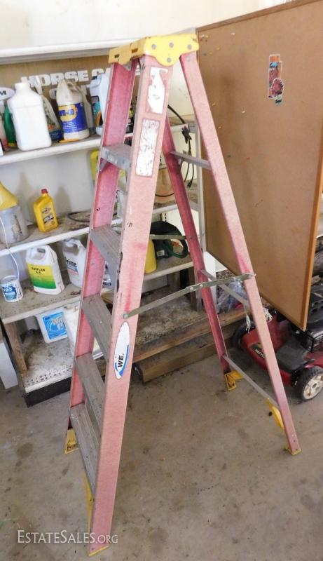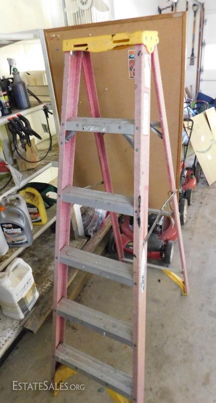 Six Foot Fiberglass Ladder is sturdy. Age wear.