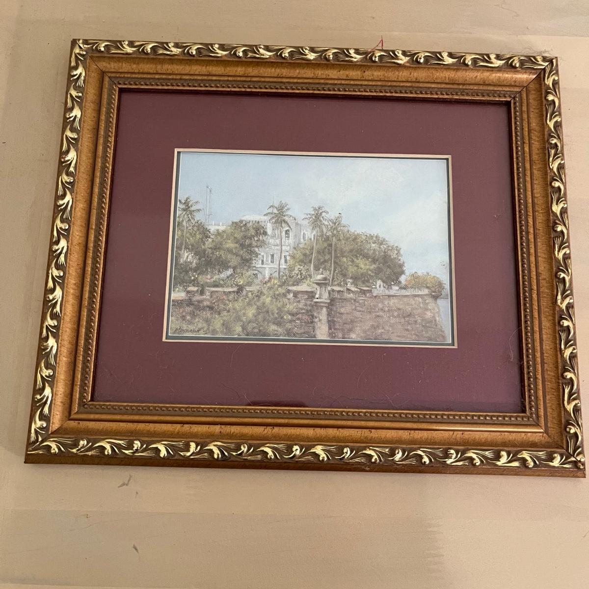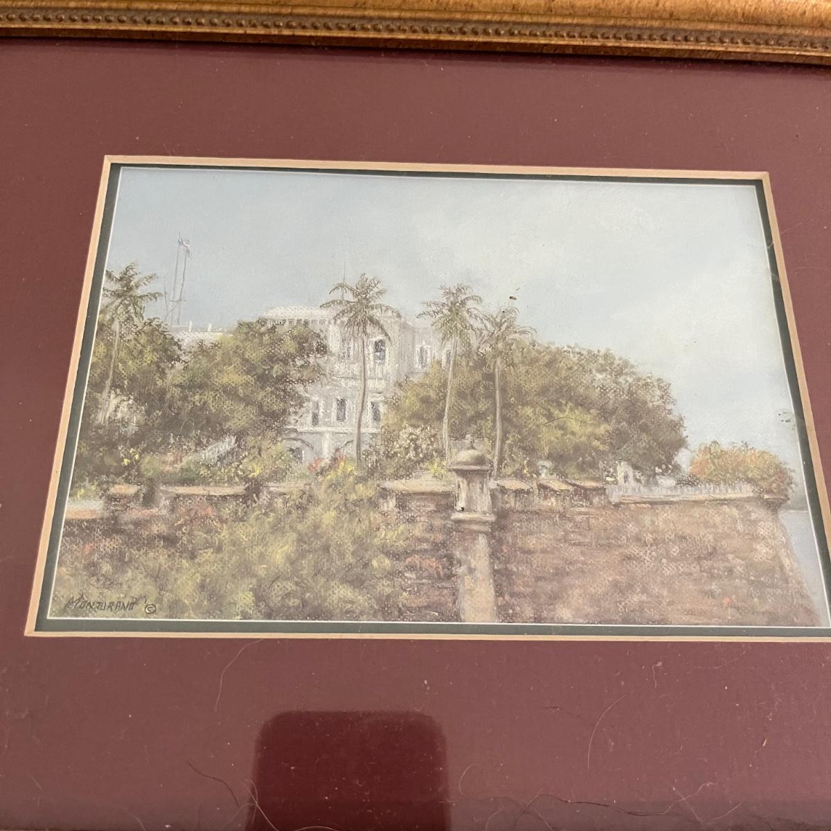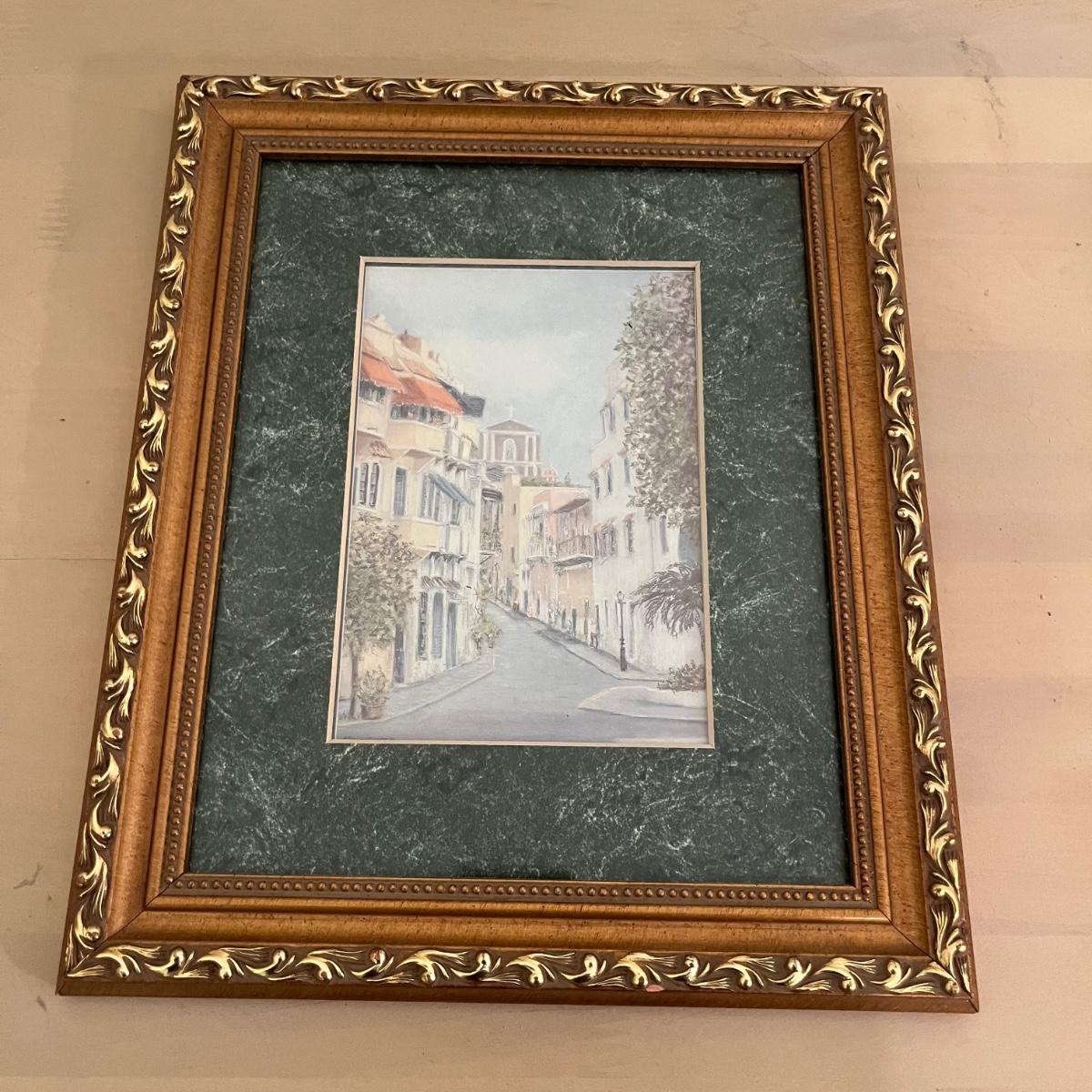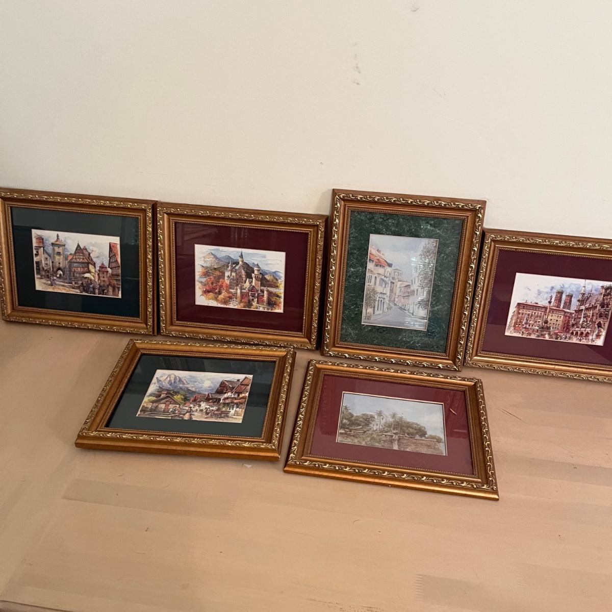 Lot includes six wooden framed and matted prints. Two are framed to hang and the other four to be placed on table top. Frames measure 10” x 12”.