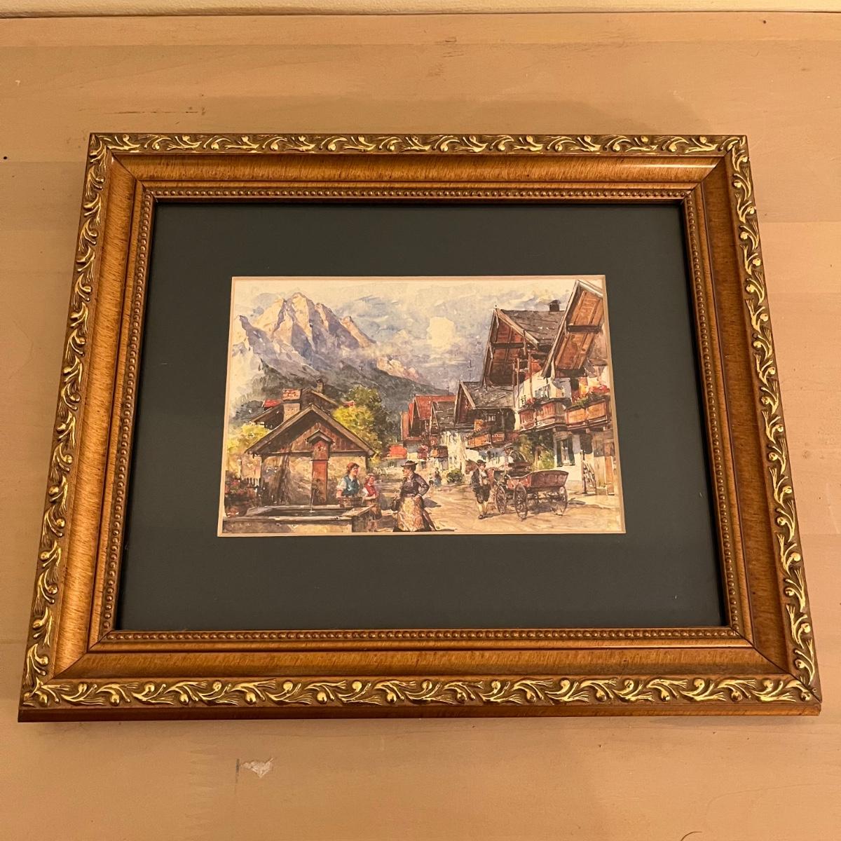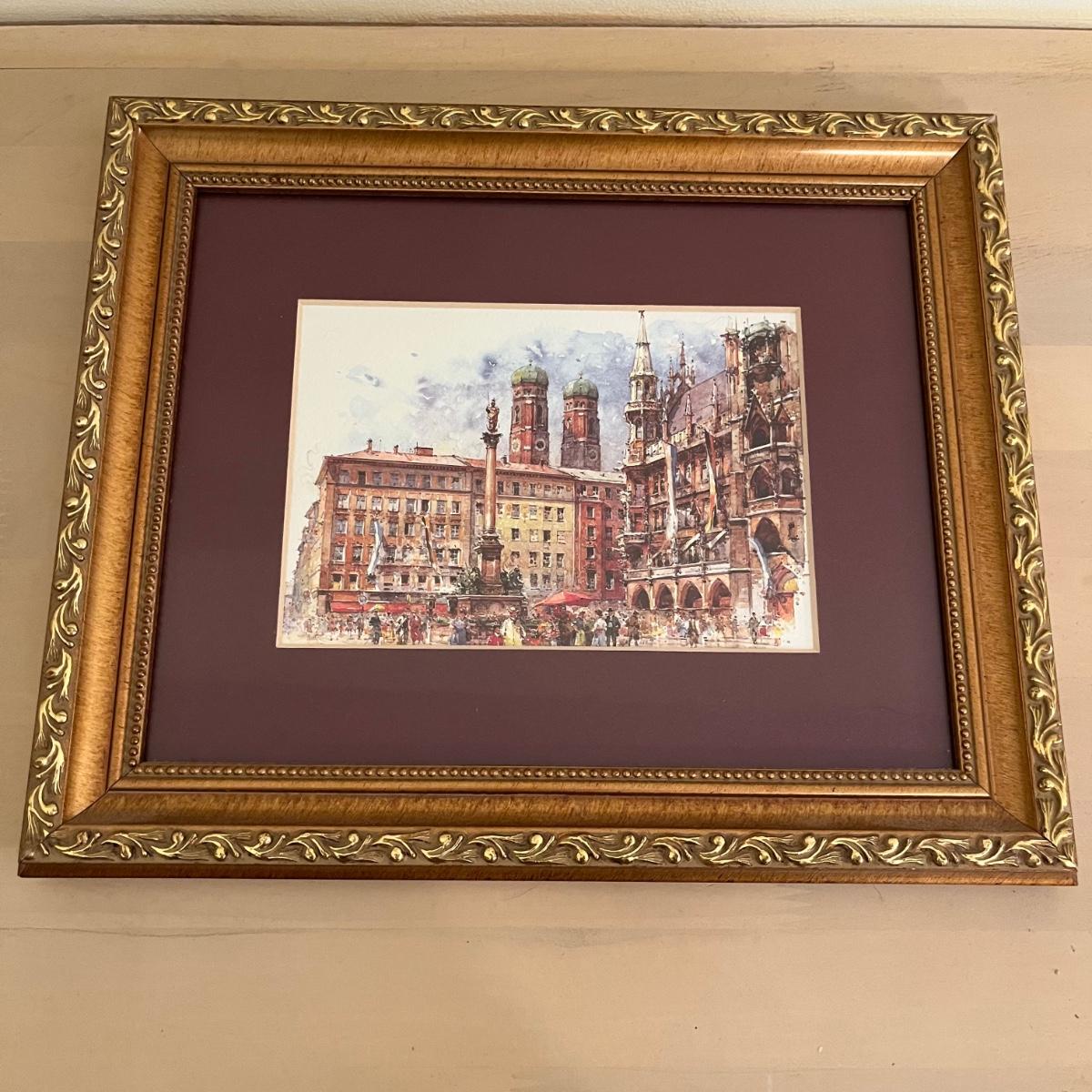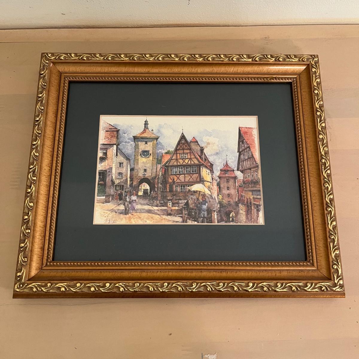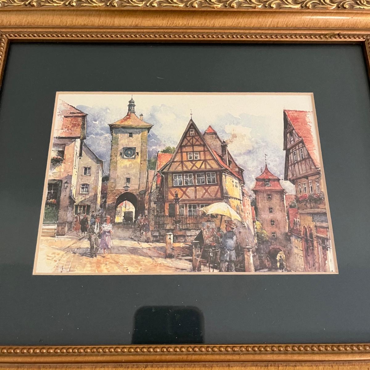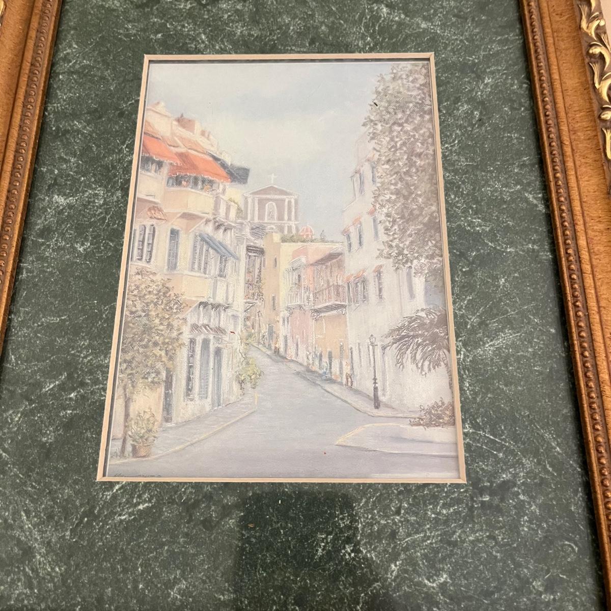 Lot includes six wooden framed and matted prints. Two are framed to hang and the other four to be placed on table top. Frames measure 10” x 12”.
