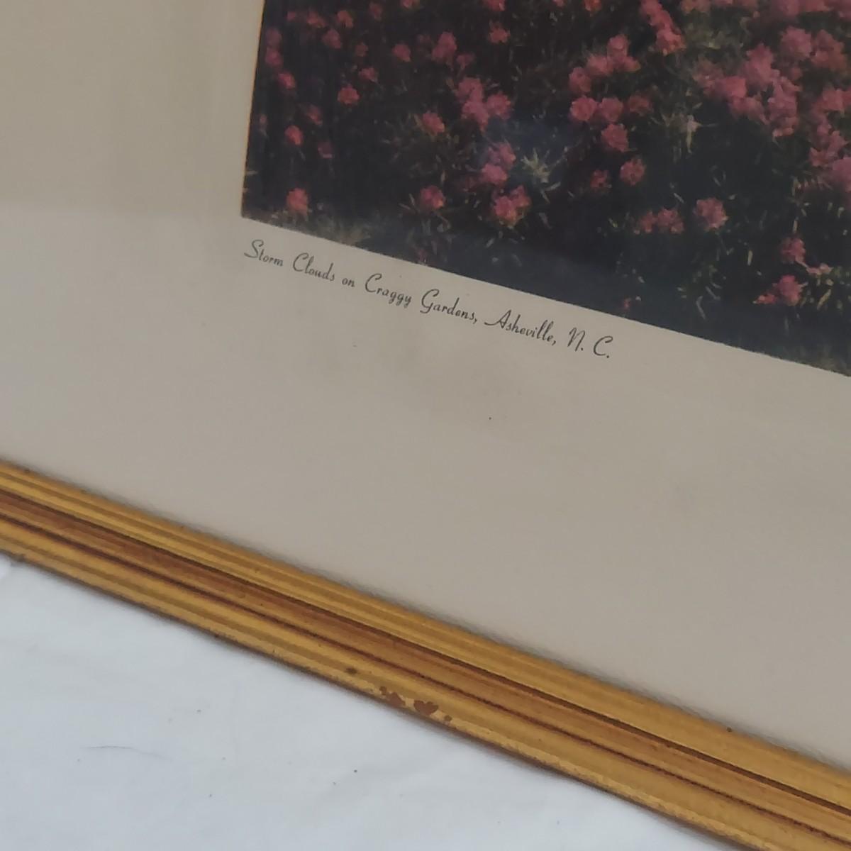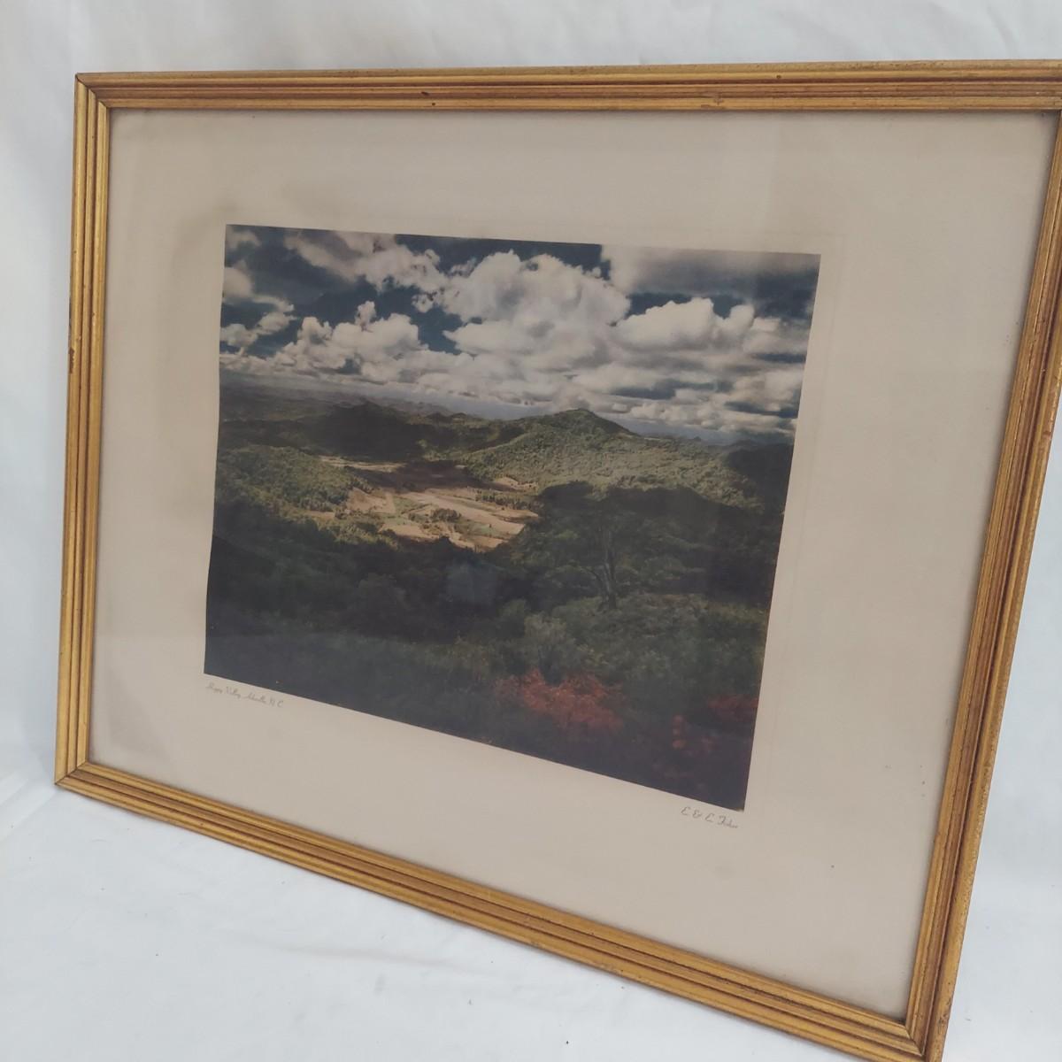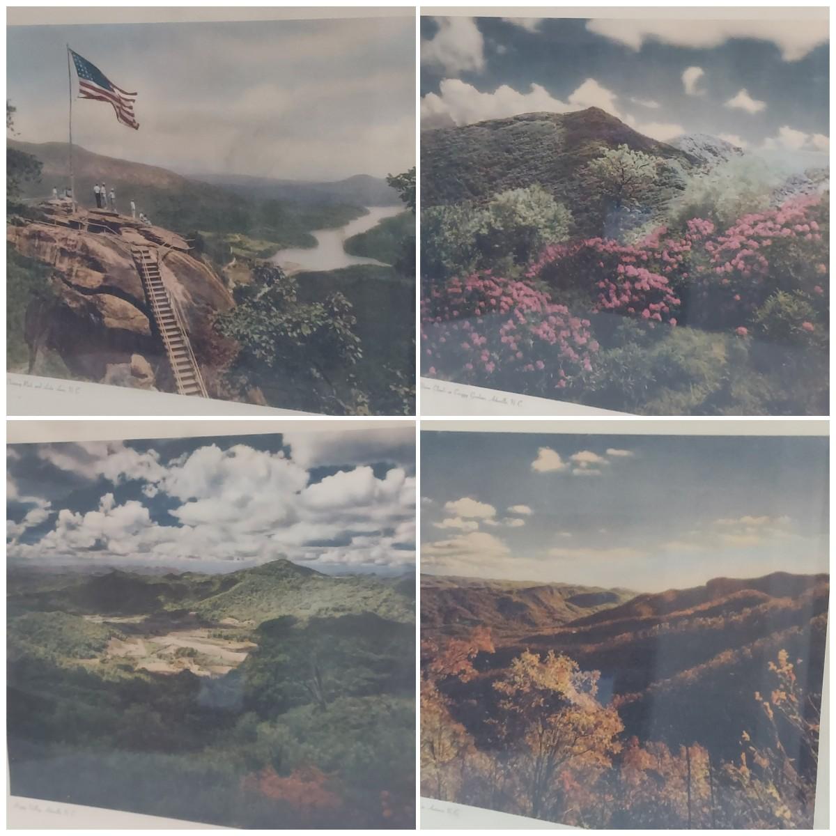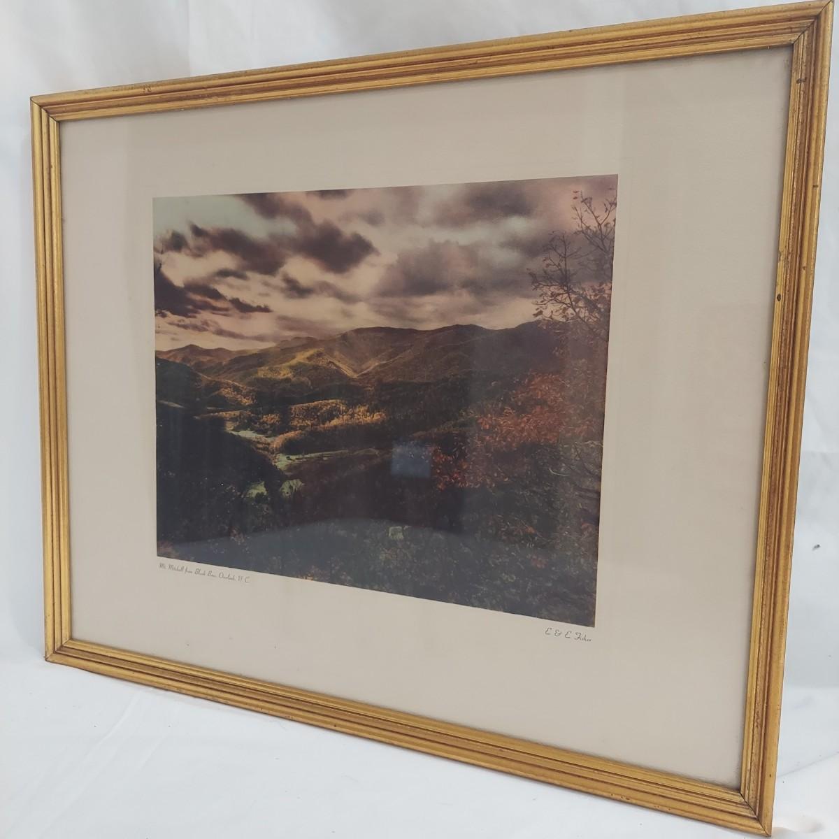 Lot includes six framed prints of different areas of Western North Carolina. Frames measure 16” x 13"H and prints are under glass. Prints include Craggy Gardens, Looking Glass Falls, Mt. Mitchell, Chimney Rock and Lake Lure, Mt. Pisgah and Happy Valley. Some condition issues. Please see photos for details. Shipping available. Shipping can be costly. We suggest contacting our preferred local shipping provider, Postage Express, with dimensions and getting an estimate before bidding: 828-255-9250 or shipping@postageexpressnc.com