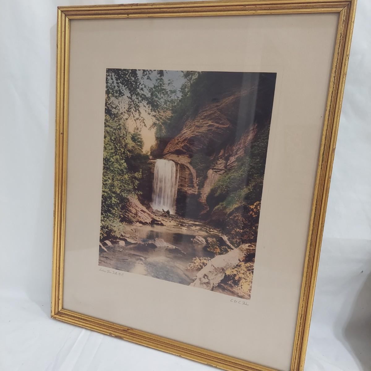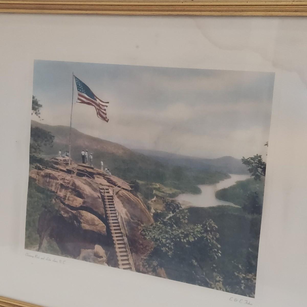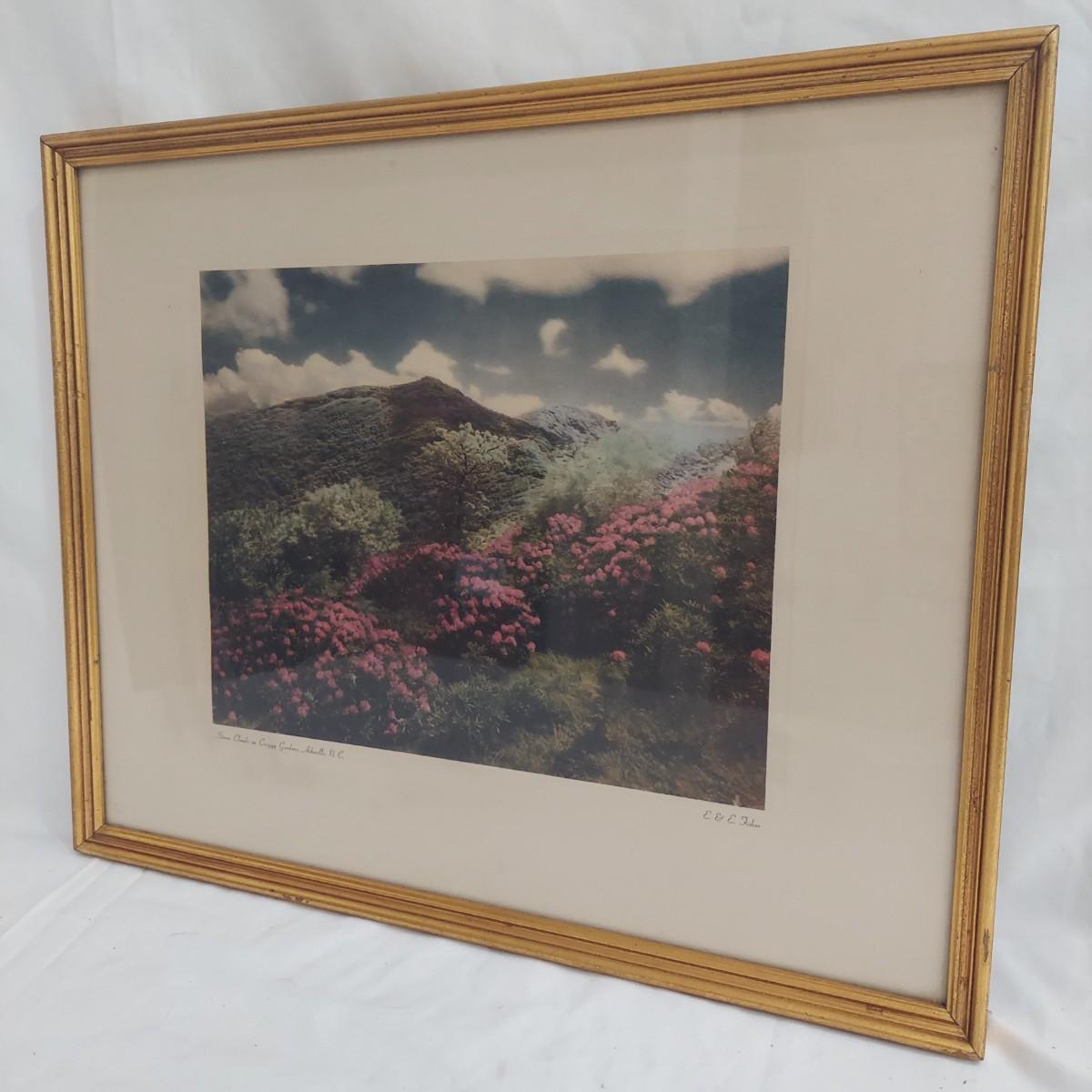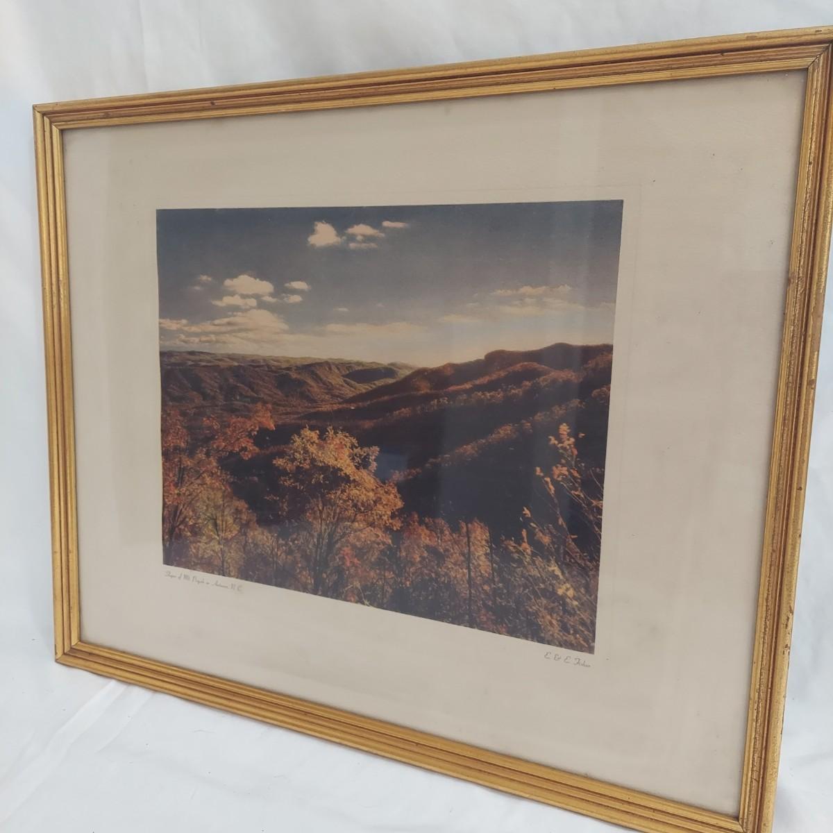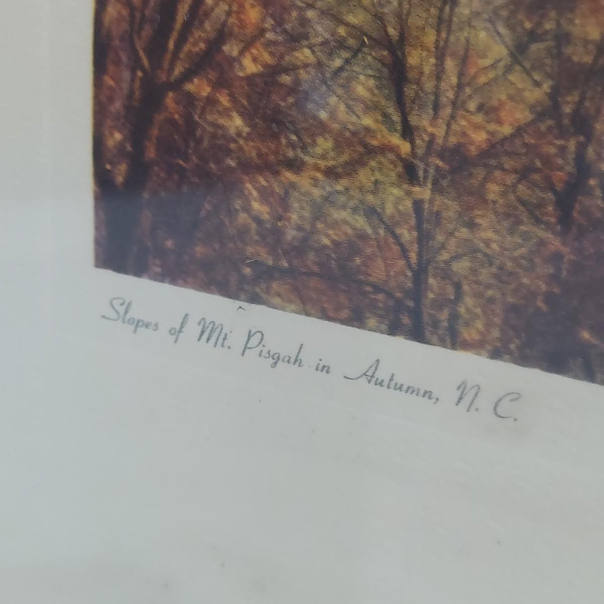 Lot includes six framed prints of different areas of Western North Carolina. Frames measure 16” x 13"H and prints are under glass. Prints include Craggy Gardens, Looking Glass Falls, Mt. Mitchell, Chimney Rock and Lake Lure, Mt. Pisgah and Happy Valley. Some condition issues. Please see photos for details. Shipping available. Shipping can be costly. We suggest contacting our preferred local shipping provider, Postage Express, with dimensions and getting an estimate before bidding: 828-255-9250 or shipping@postageexpressnc.com