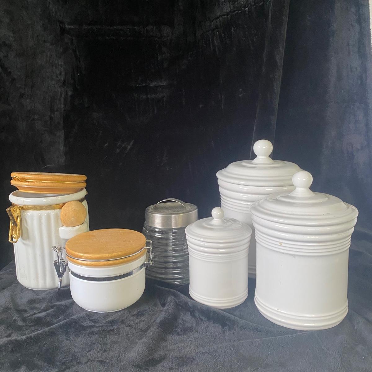 Six Glass Flour and Sugar Containers (Fr-EJ)