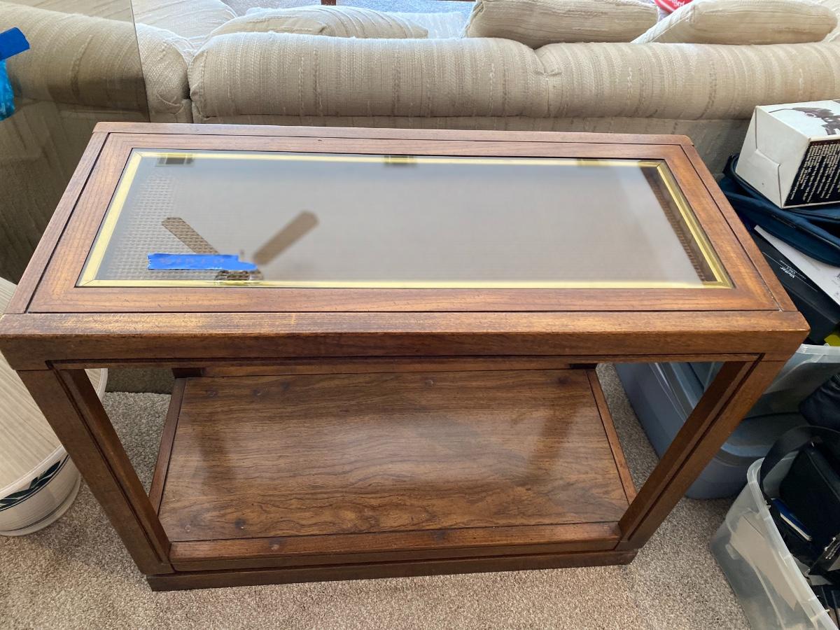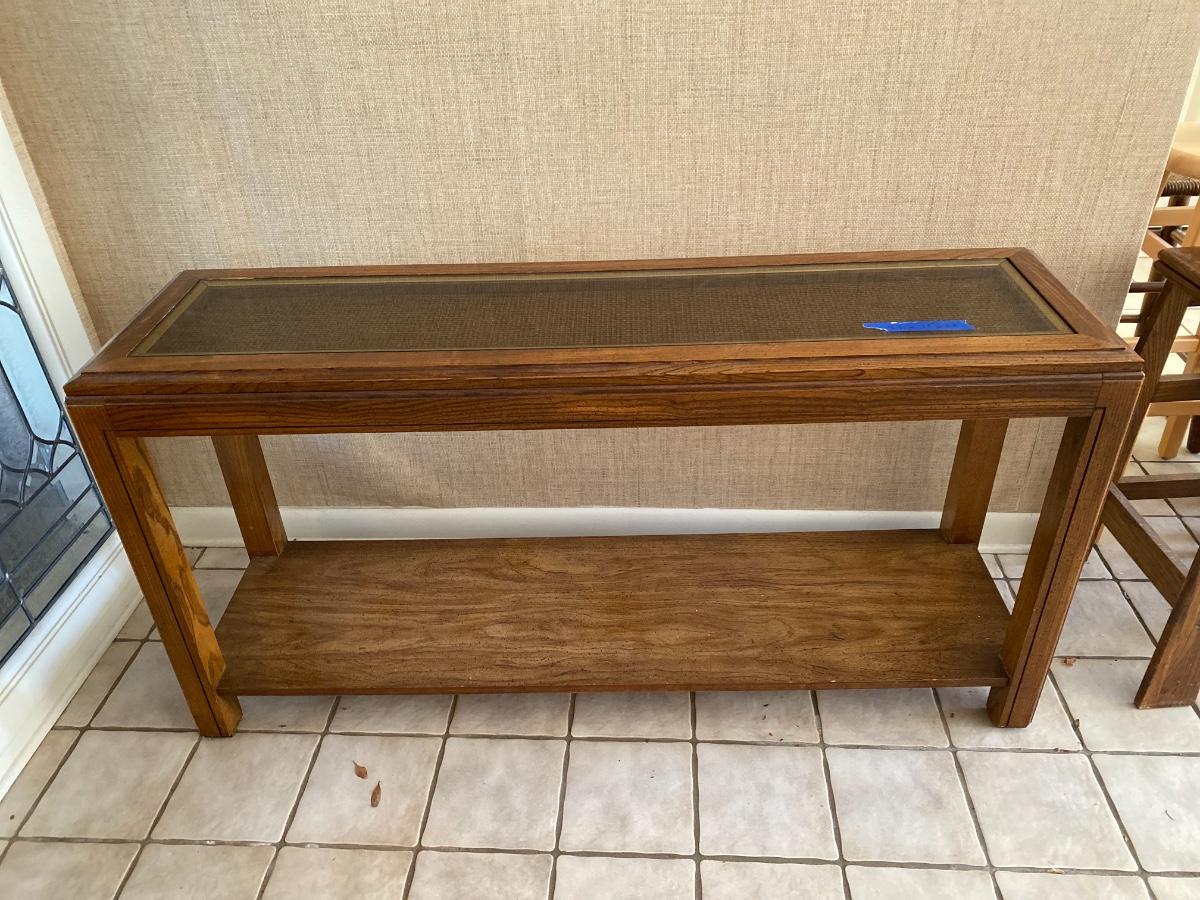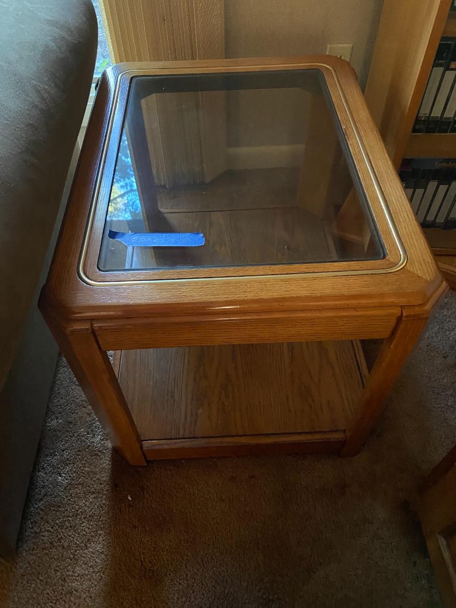 Includes coffee table, three Consol tables and two end tables. See all photos. Measurement descriptions are in photos as well. Heavy items! You must bring help to move these items or arrange for a professional mover.